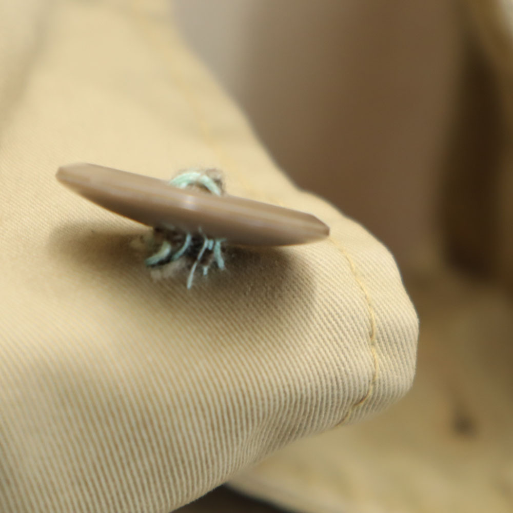 詳細 | 後身頃裾のボタンは欠損。全体的にスレや色褪せあり。首周りや所々に汚れ、2番目ボタン下に破れあり。古着にご理解の上ご購入をお願い致します。 |