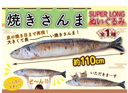 【焼きさんま】さんま SUPER LONG ぬいぐるみ BIGぬいぐるみ 抱き枕 スーパーロング 全1種 全長約110cm 秋刀魚 サンプラザ 送料660円