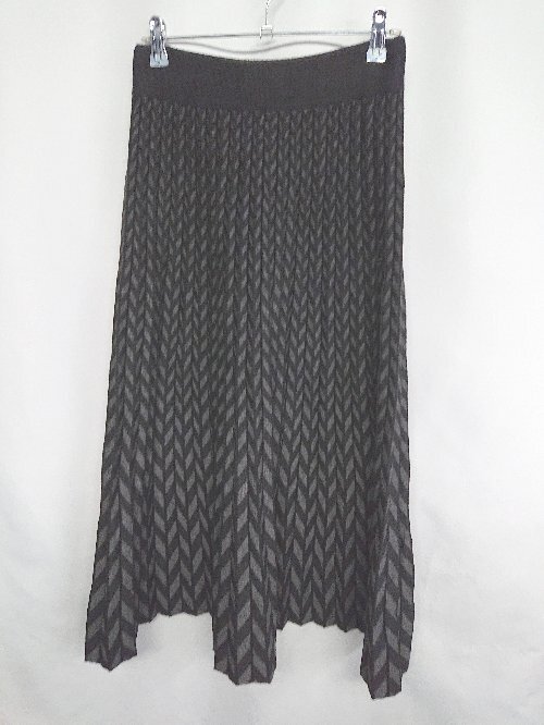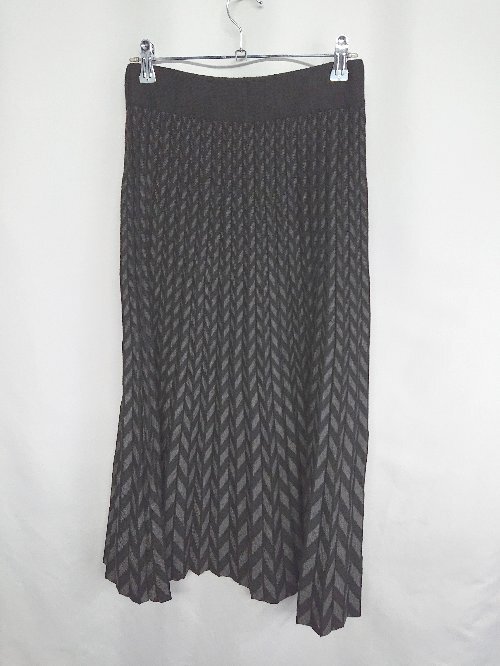 ◇ ⊇ Thevon. ゼヴォン 総柄 ロング丈 プリーツ スカート 表記なし ブラック ダークグレー レディース E