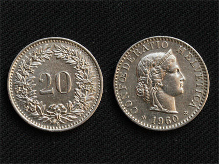 【スイス】 20ラッペン 1960年 シャクナゲと女神 白銅貨