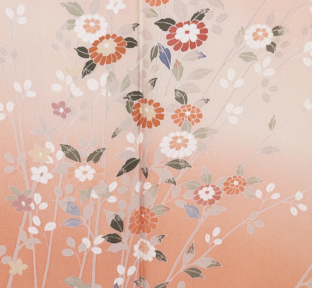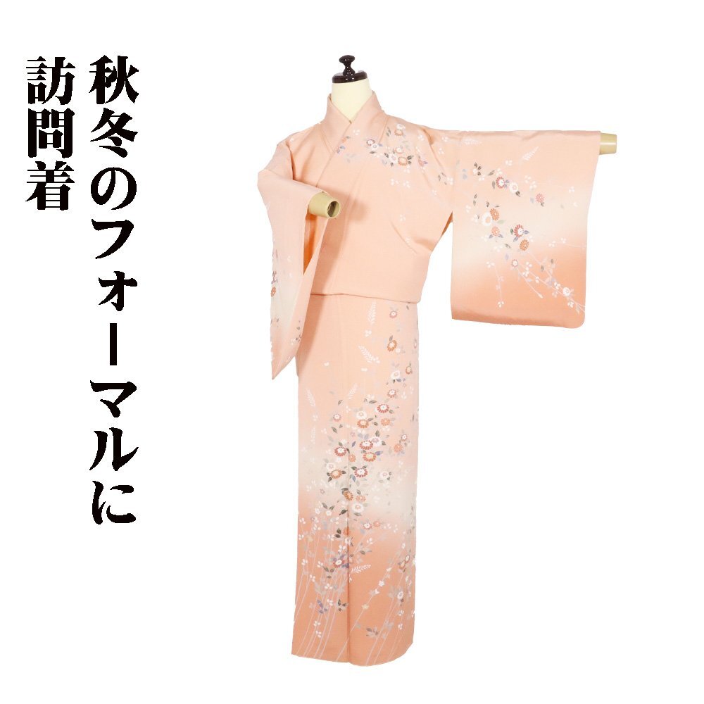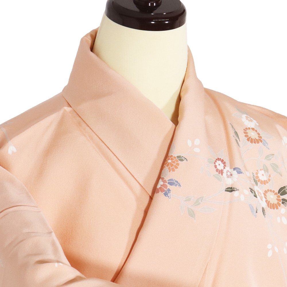 | 友禅訪問着 袷 丹後縮緬地 サーモンピンク暈し地 菊・南天 160 広襟 |