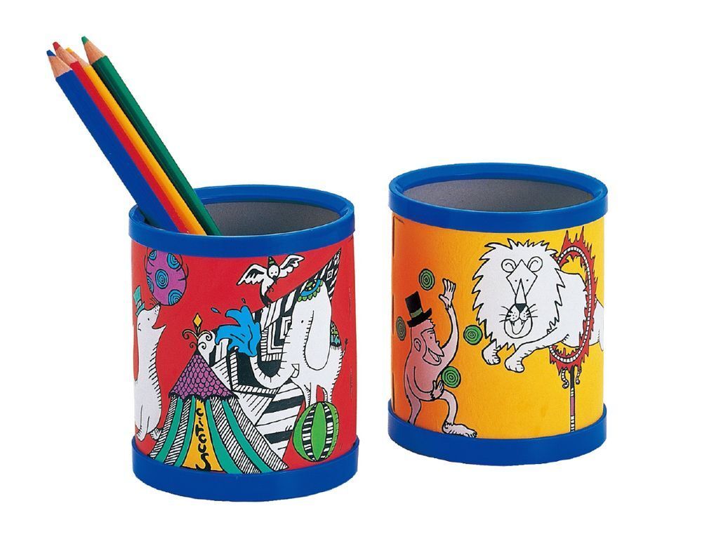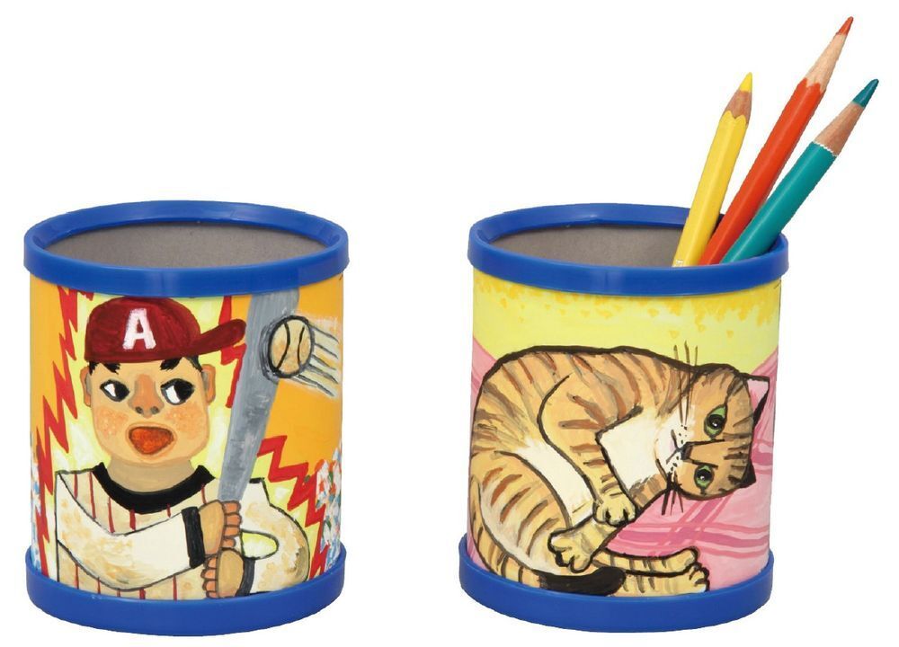 側面画紙にポスターカラー等で絵を描いて組み立てるデザインペン立てです。