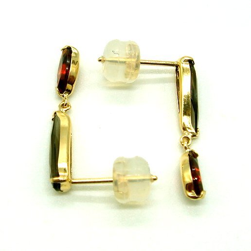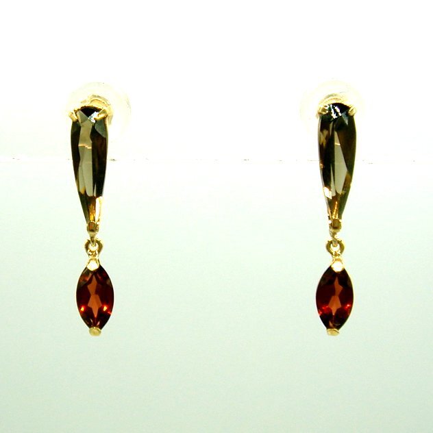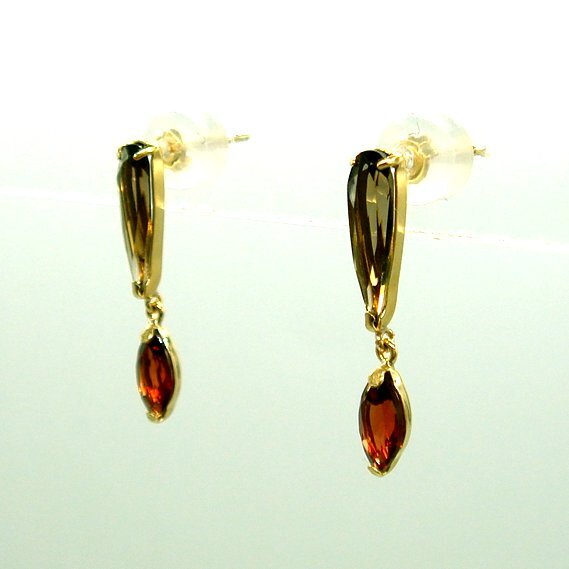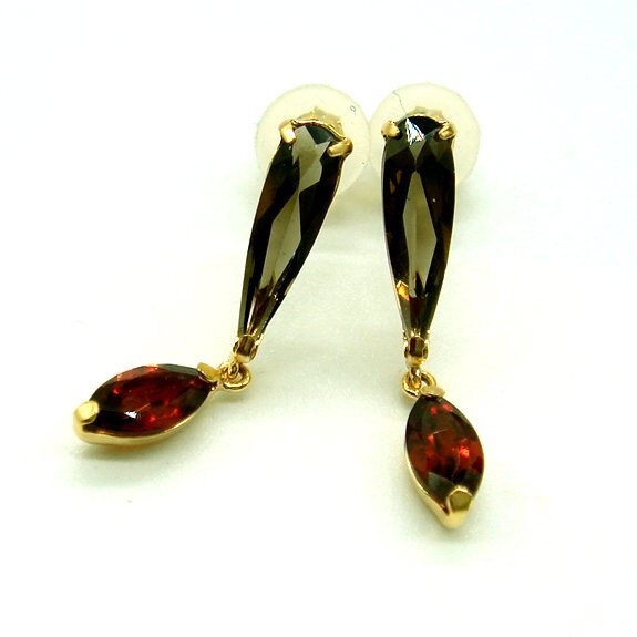3×10mmと、ちょっと特殊なかなり縦長のペアシェイプのスモーキークォーツの先にマーキスシェイプのガーネットを下げました。