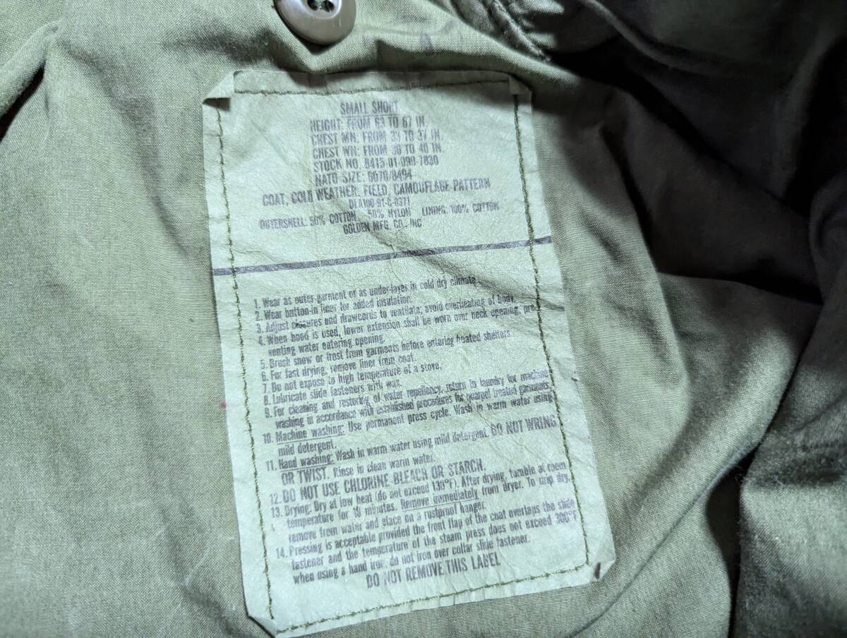 送料無料 91年製 M-65 ウッドランド カモ GOLDEN MFG small short golden mfg 迷彩 アメリカ製 made in usa 米国製 m65 戦闘服 希少サイズ