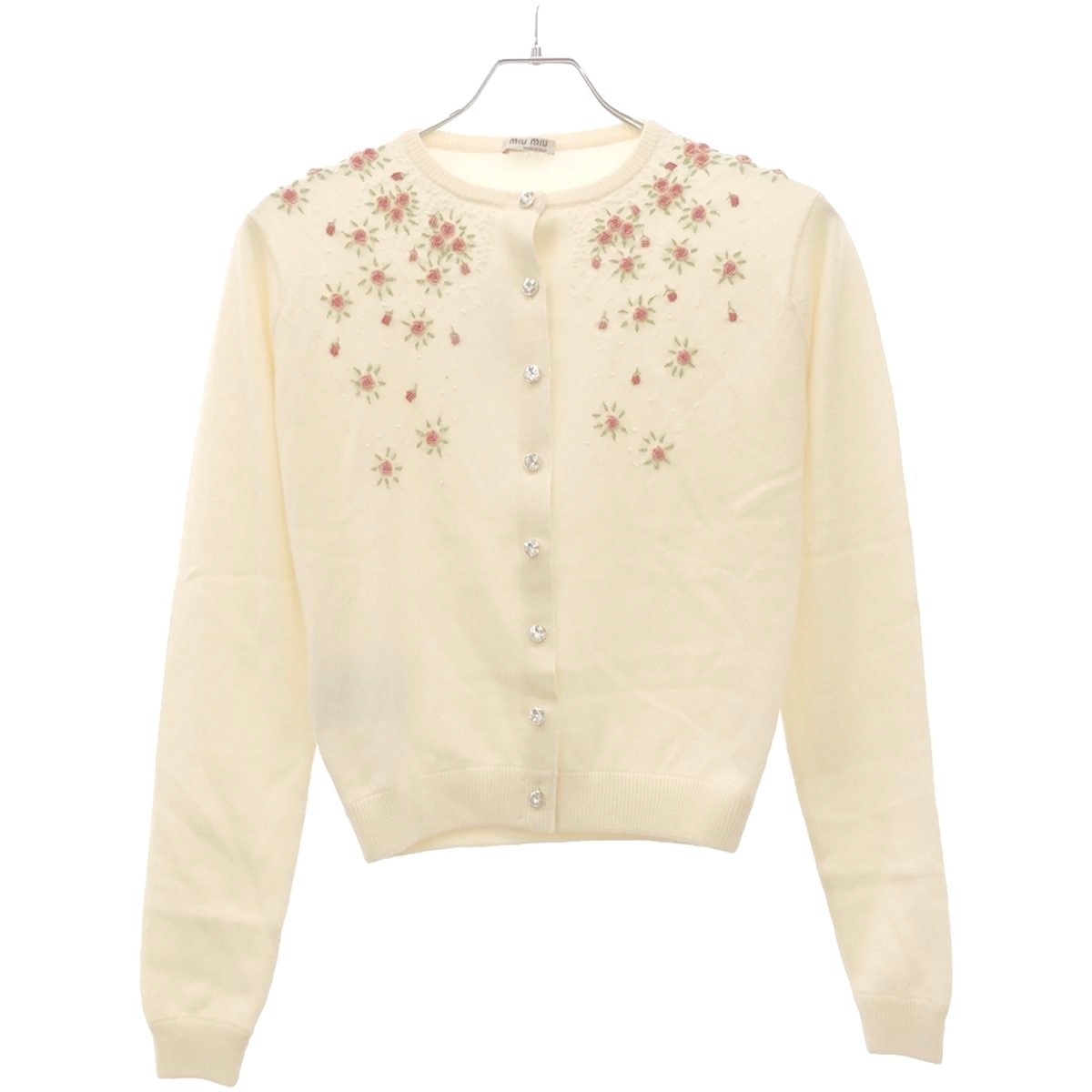 miu miu ミュウミュウ 19AW フラワーエンブロイダリー デコレーションカシミヤカーディガン MMF128 オフホワイト 36 ITX9HN6JFCT2