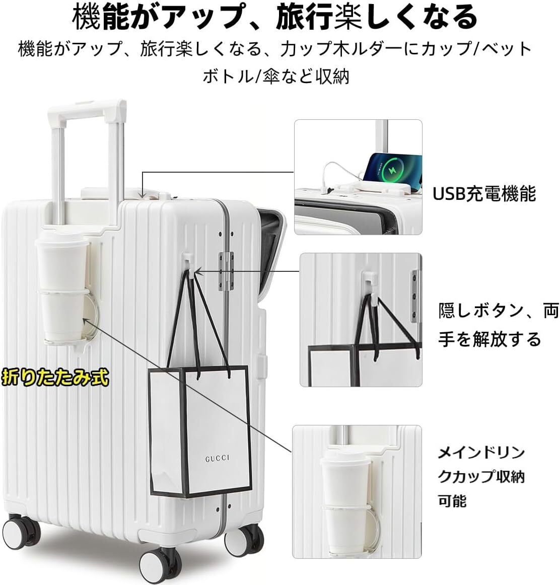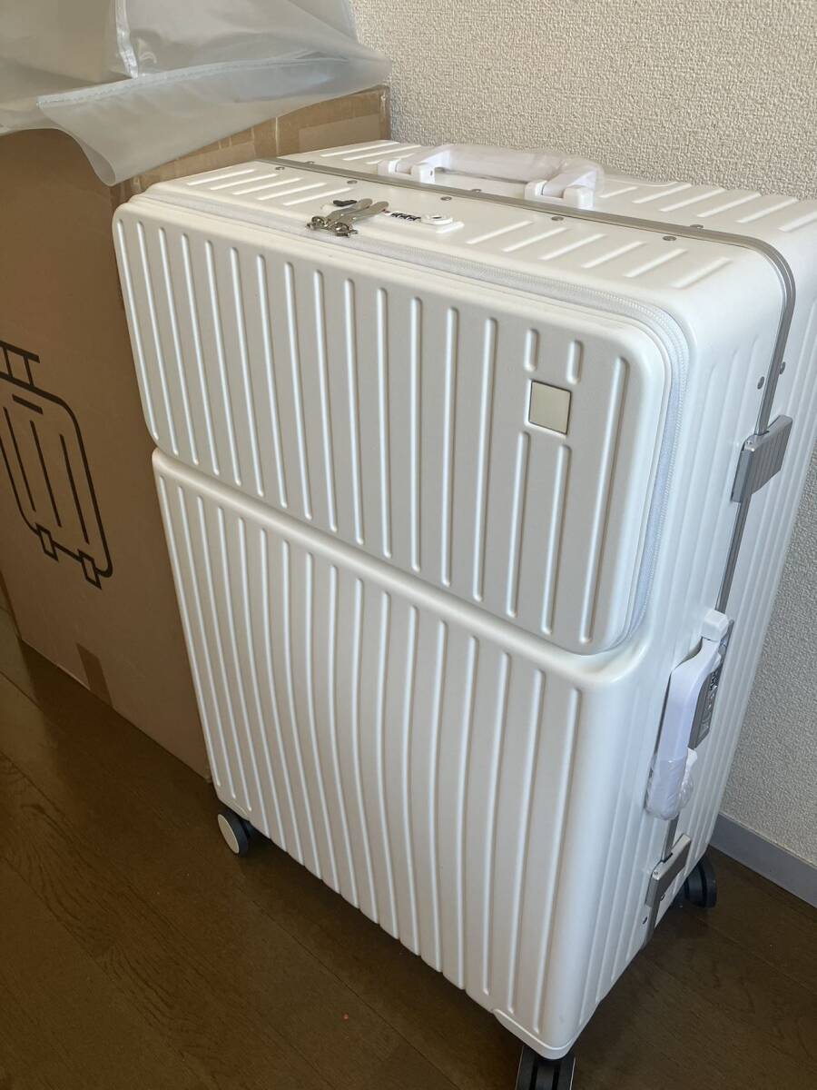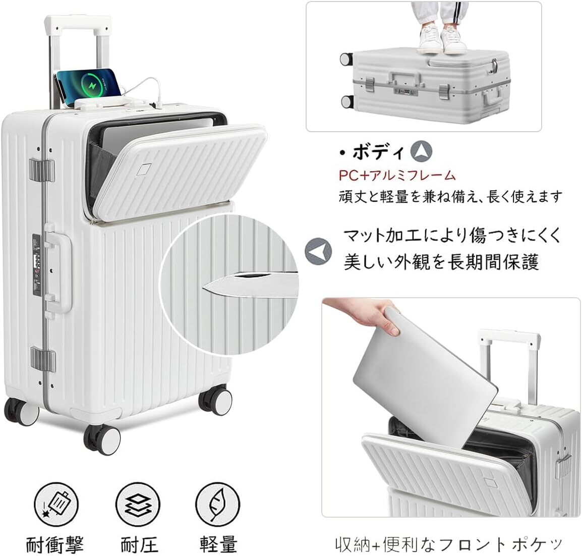 スーツケース キャリーケース usbポート付き 前開き ホワイト Lサイズ 98L
