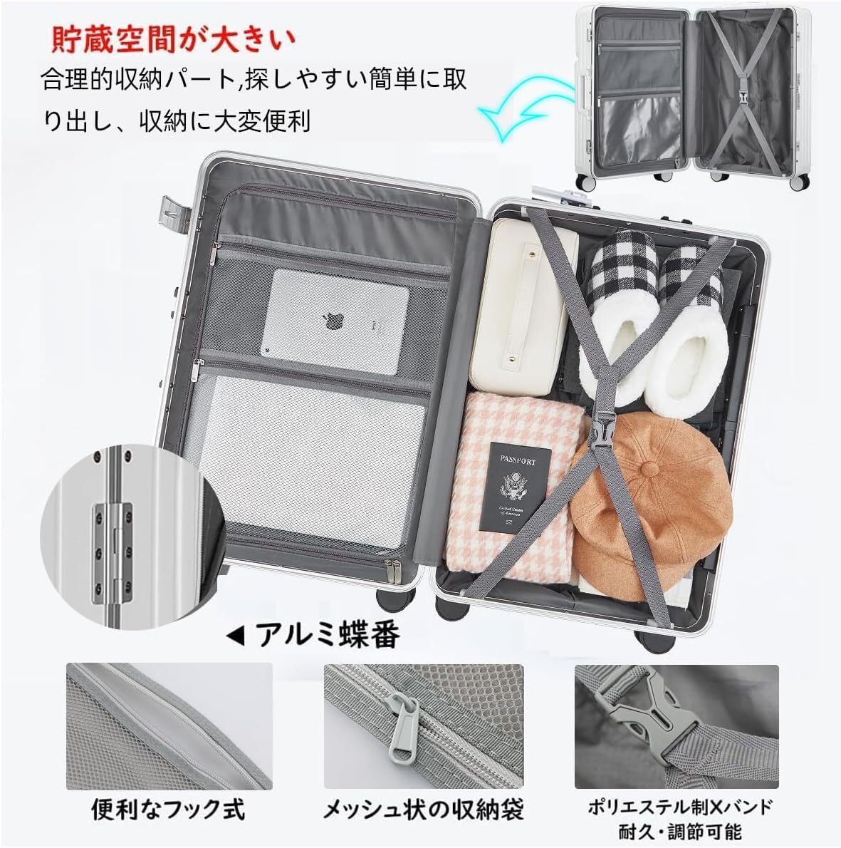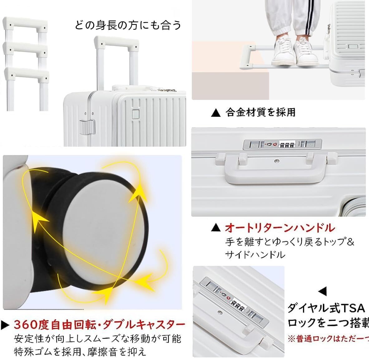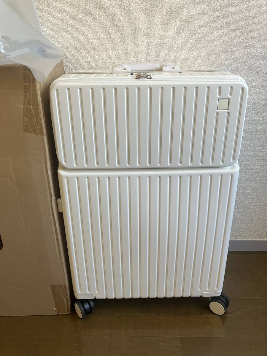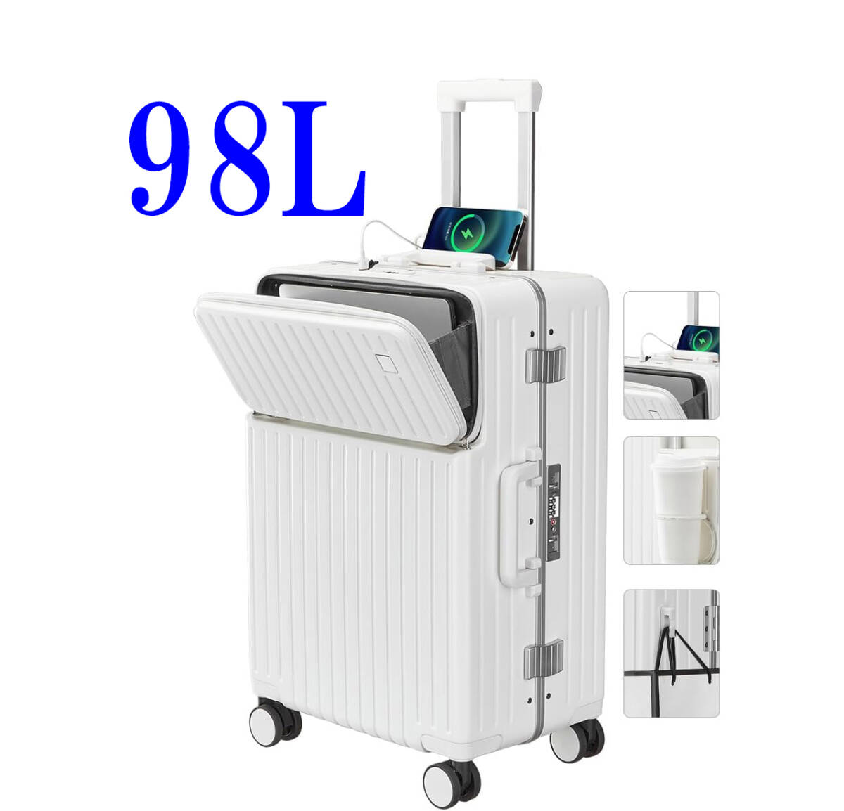 スーツケース キャリーケース usbポート付き 前開き ホワイト Lサイズ 98L