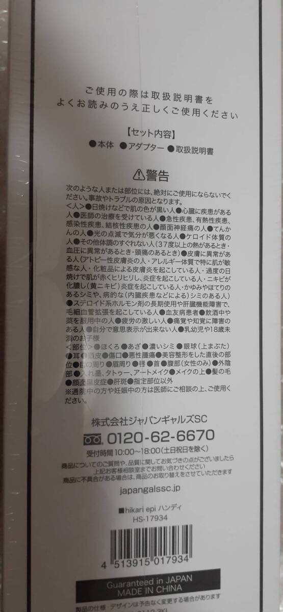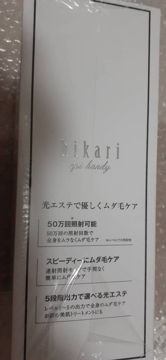 ・新品未使用品 ・使いやすい重量186gの軽量タイプ おうち時間に手軽にできるハンディタイプ! 軽量186gだから持つ腕への負担も少なく気軽にケアが可能。 ・50万回照射可能! 本格機能搭載!50万回の照射回数で全身をムラなくムダ毛ケア! (レベル1照射時) ・スピーディーにムダ毛ケア 自動照射モード付だから、お肌をすべらすだけでスピードケアが可能! ・5段階出力で選べる光エステ レベル1〜5の出力で全身のムダ毛ケア!お顔の美肌トリートメントにも ※評価の悪い方、新規の方は入札されても入札を削除することがございますのでご了承くださいませ | |