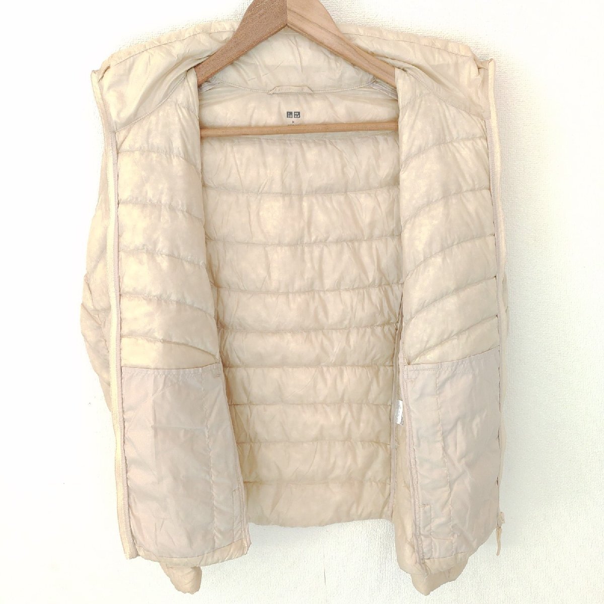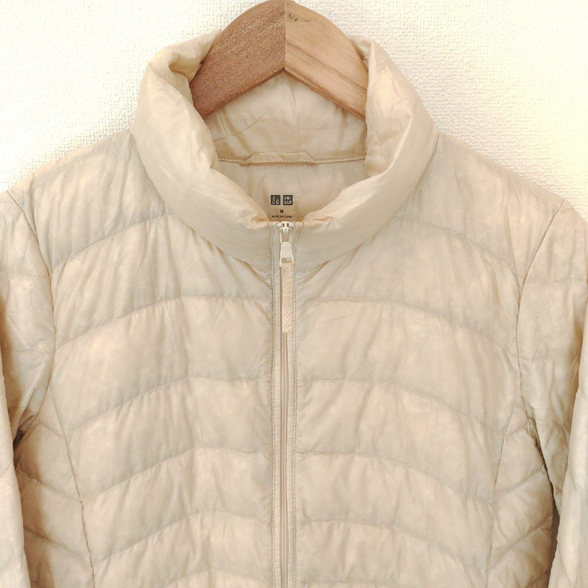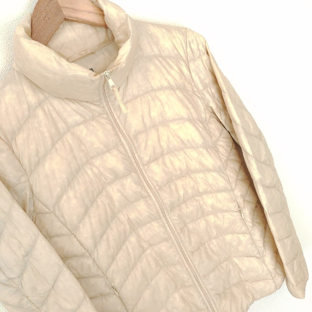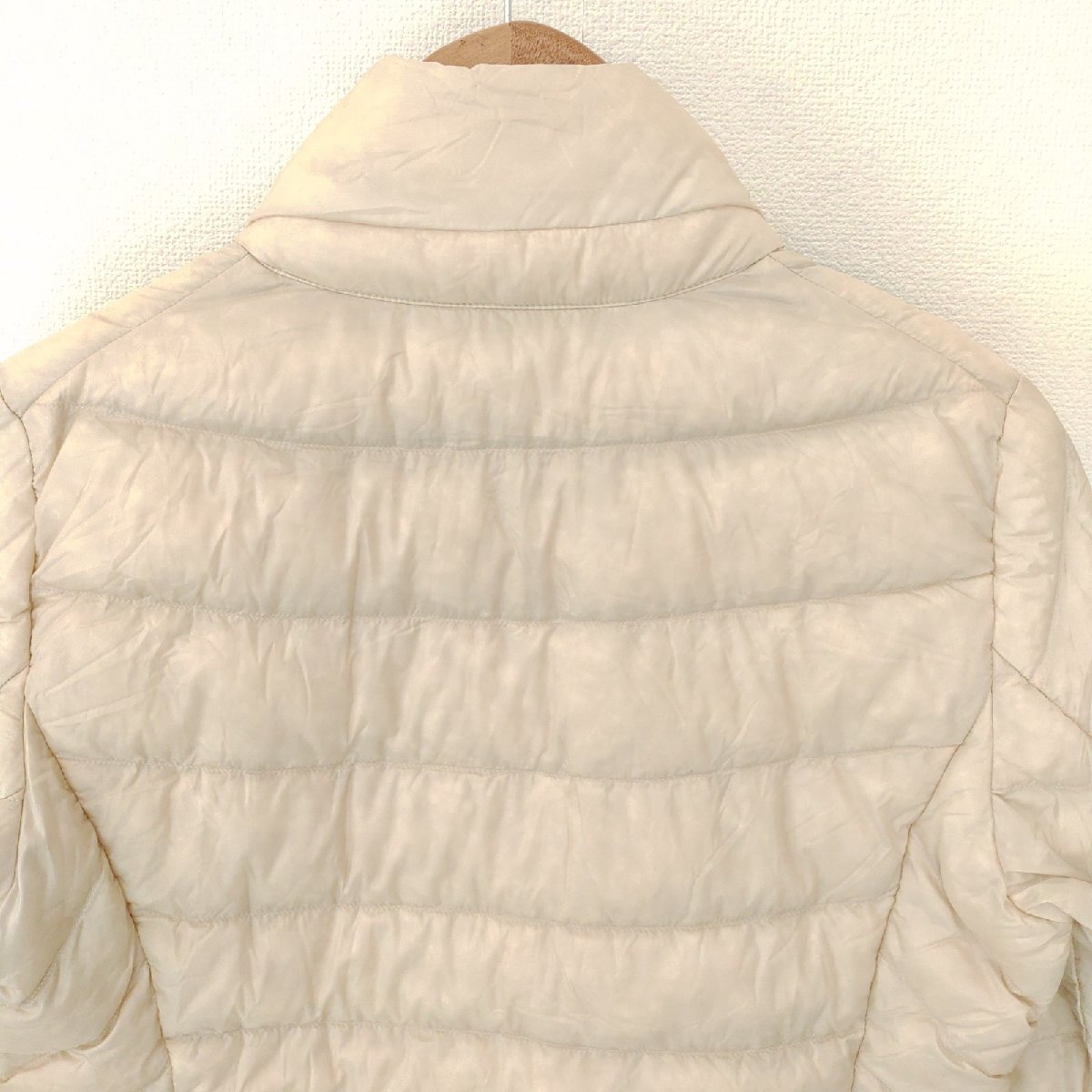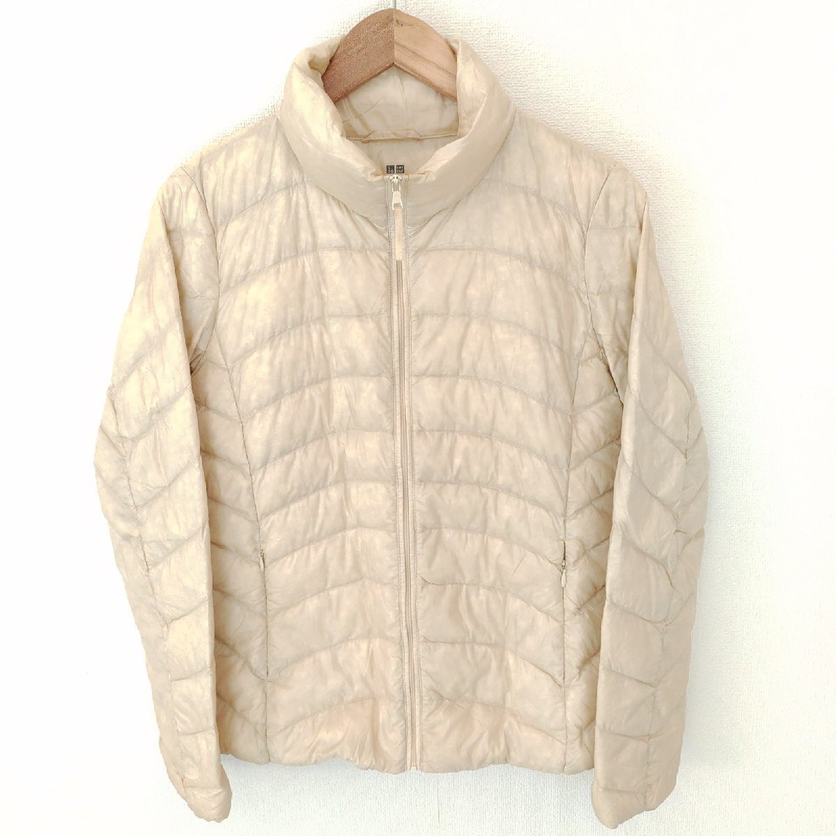 (^w^)b UNIQLO ユニクロ 長袖 ジップ スタンドカラー キルト ナイロン ジャケット ジャンパー ウルトラライト ダウン アイボリー M 10035DD
