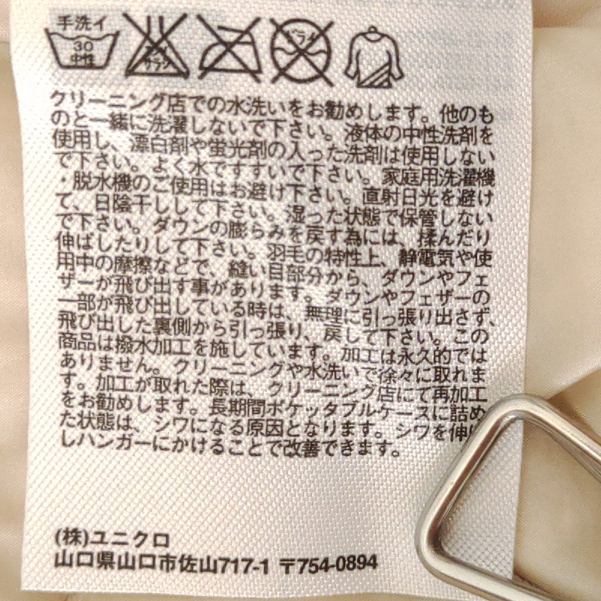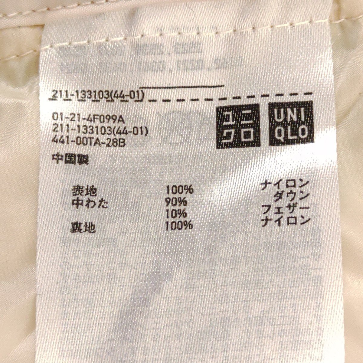 《UNIQLO ユニクロ》裏表:ナイロン100% ダウン90% フェザー10%