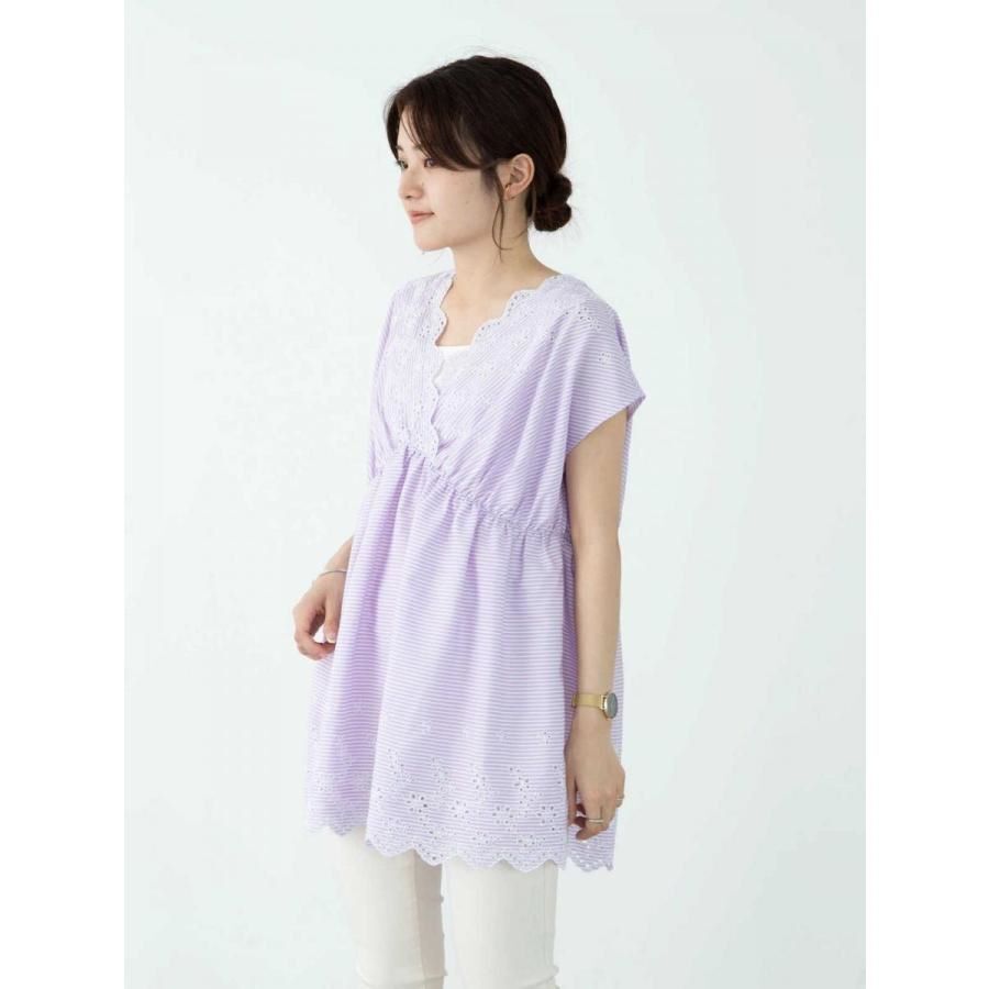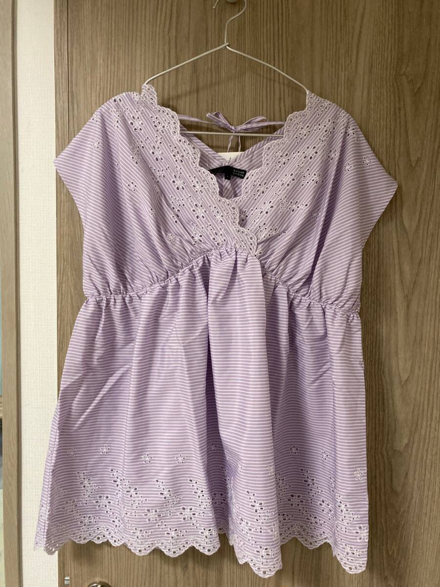 【未使用】レディース スカラップ 刺繍 チュニック ブラウス SUGAR SPOON フェミニン パープル レース きれいめ フリーサイズ
