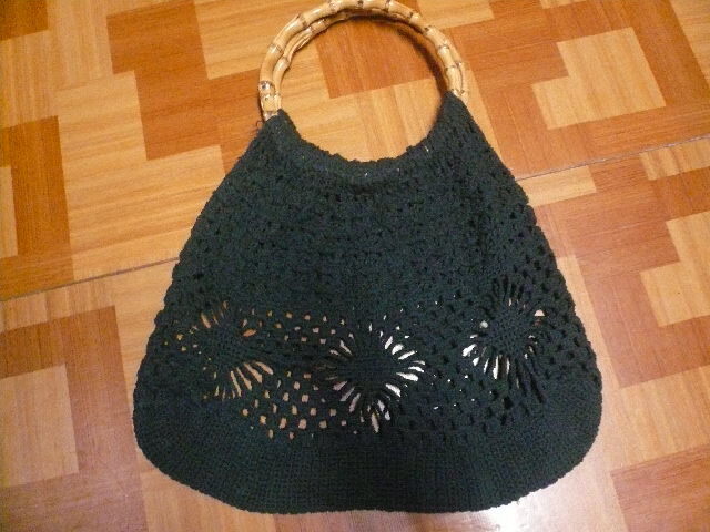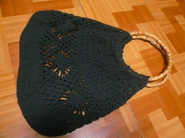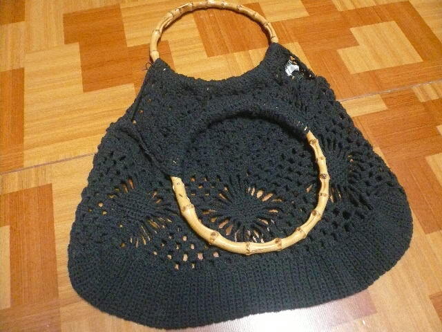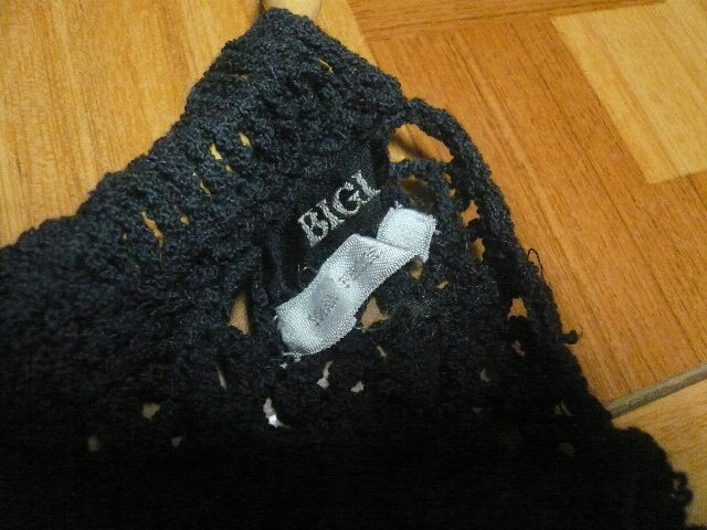 商品名に記載された BIGI ビギのタグがついた 竹の輪がついた手編み風 袋物 黒系 (YARN FROM ITALY)のタグあり