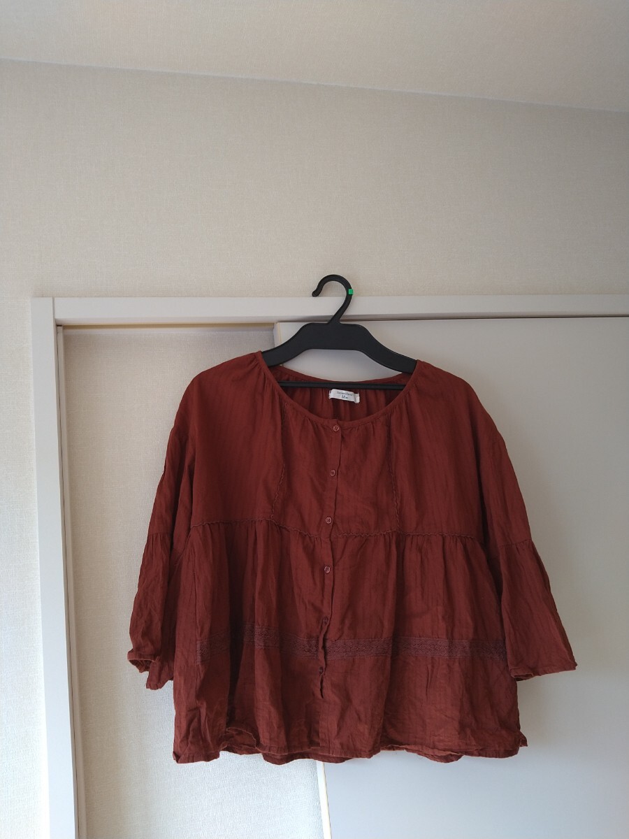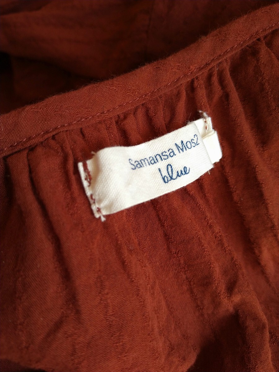 数回着用☆Samansa Mos2 blue☆フレア袖ブラウス☆裾近くにレース有り☆サマンサモスモスブルー☆М☆ブラウン系☆トップス