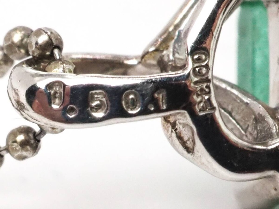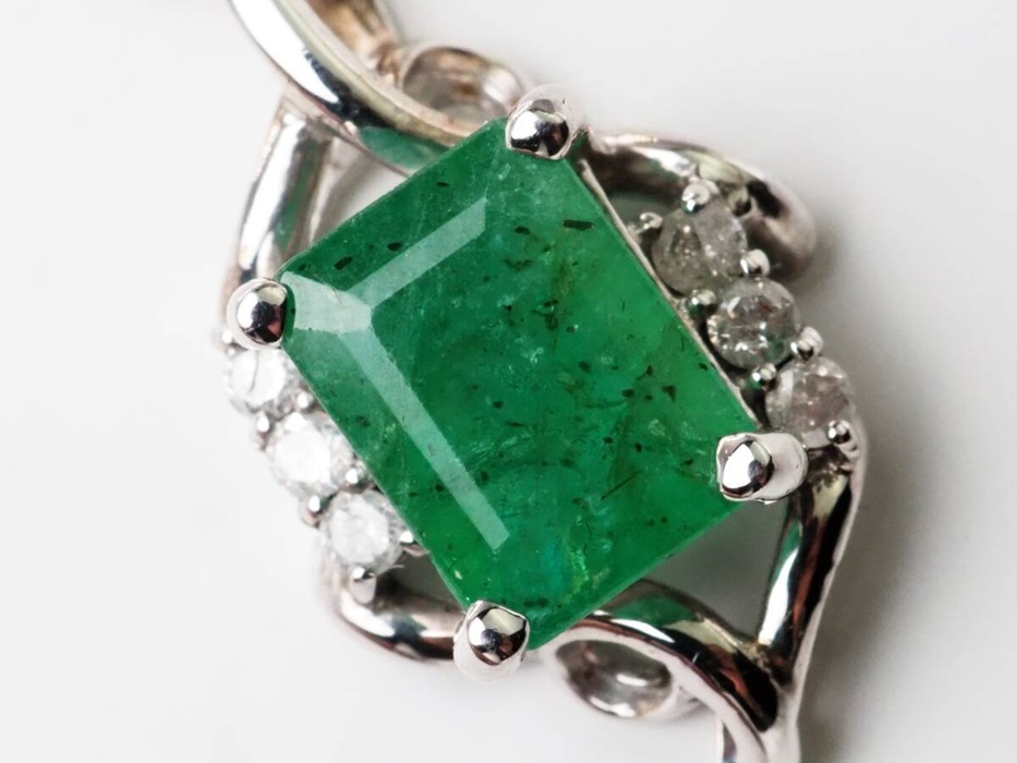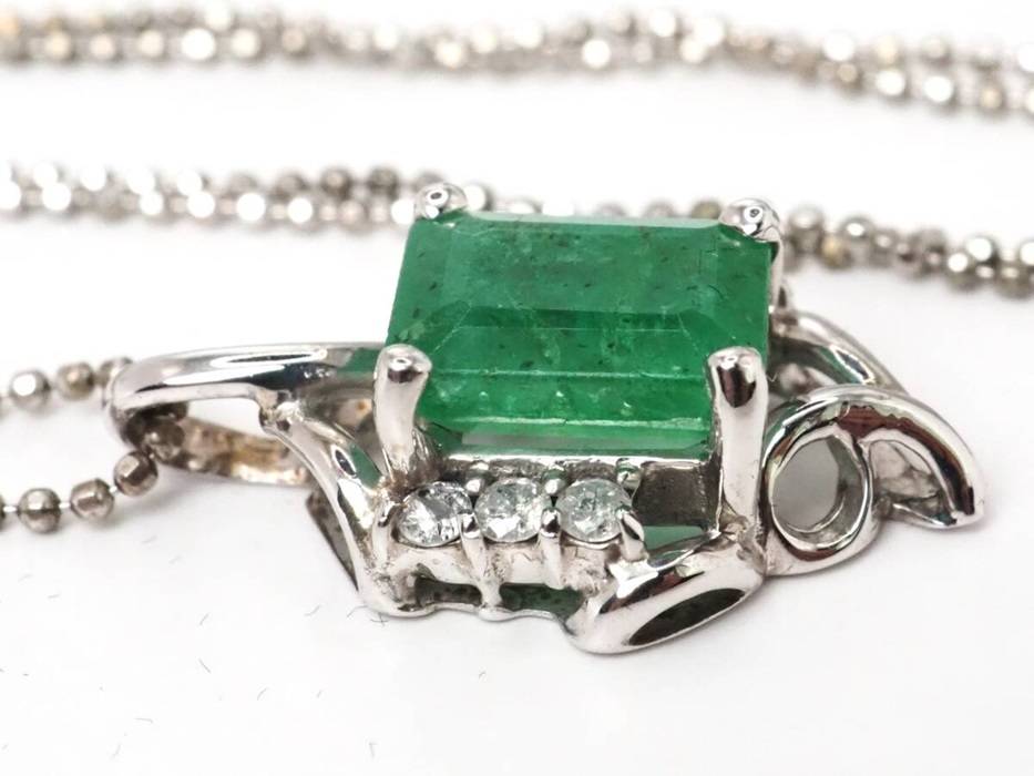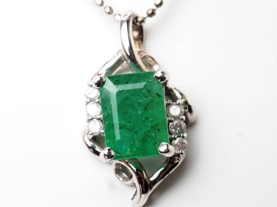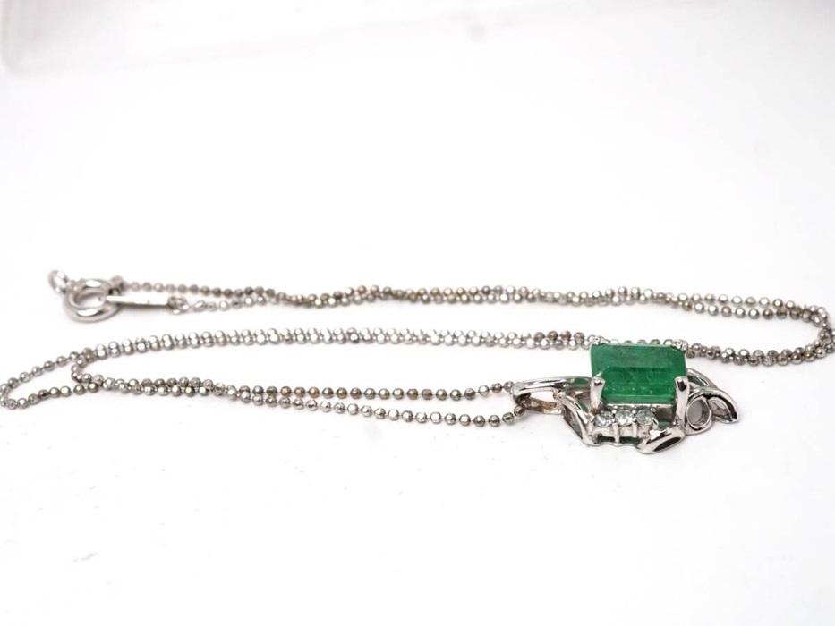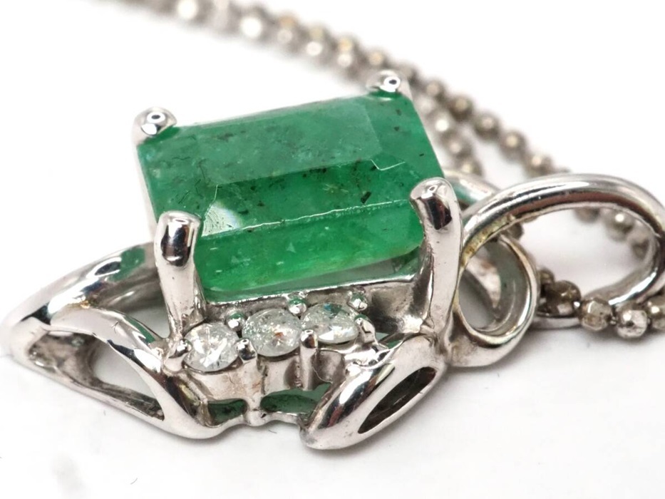 (1740) Pt900/SV925 エメラルド ダイア付 ペンダントネックレス付き
