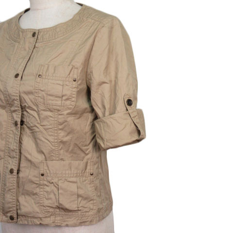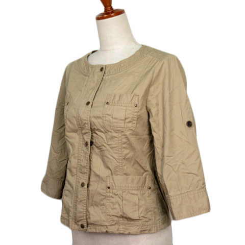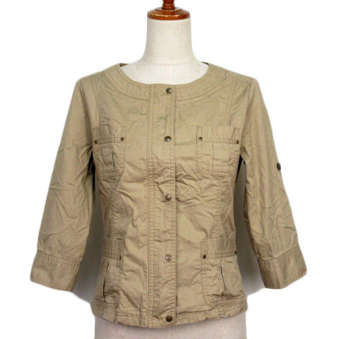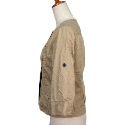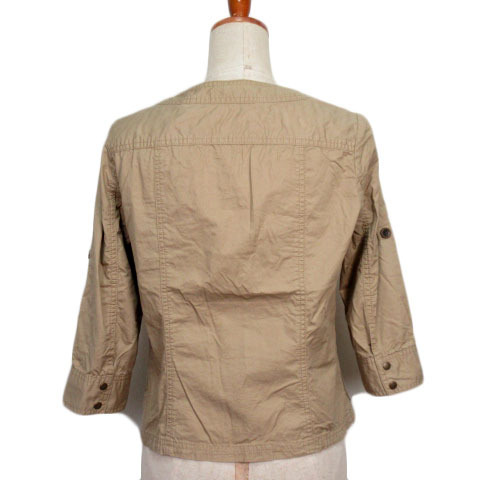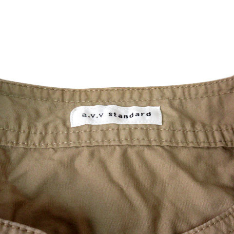 アー・ヴェ・ヴェスタンダード ミッシェルクラン a.v.v standard ジャケット ノーカラー 七分袖 コットン 38 ベージュ カーキ レディース