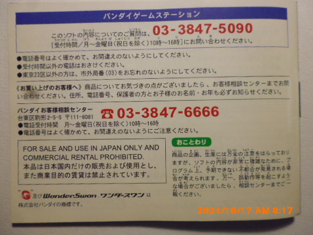Wonder Swan Game・ワンダースワン/Terrors・ テラー Bandai バンダイ  1999s Made in Japan