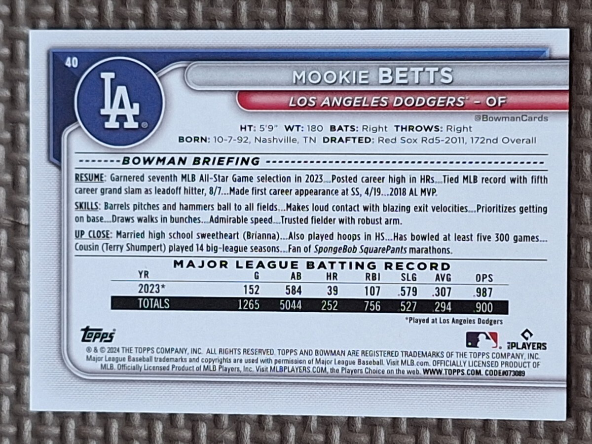 2024 Bowman #40 MOOKIE BETTS Los Angeles Dodgers Boston Red Sox