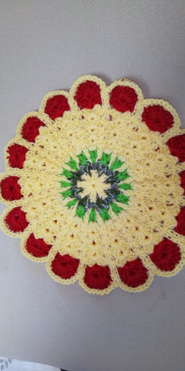 アクリル、毛糸などミックスして編んでいます。 直径 33cm 発送は補償はありませんが定形外500円で送ります。なお複数、落札する場合は送料が変わってきますのでこちらからご連絡致します。 お互いに見えない相手同士のため、少しでも 気持ちの良いお付き合いをお願いしたいと思っています。落札後3日以内にご連絡がない場合はお取引の意思がないものと判断させていただきます。よろしくお願いいたします。