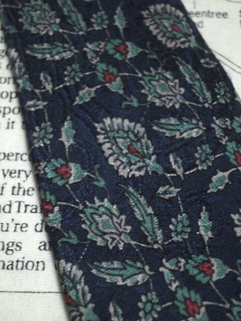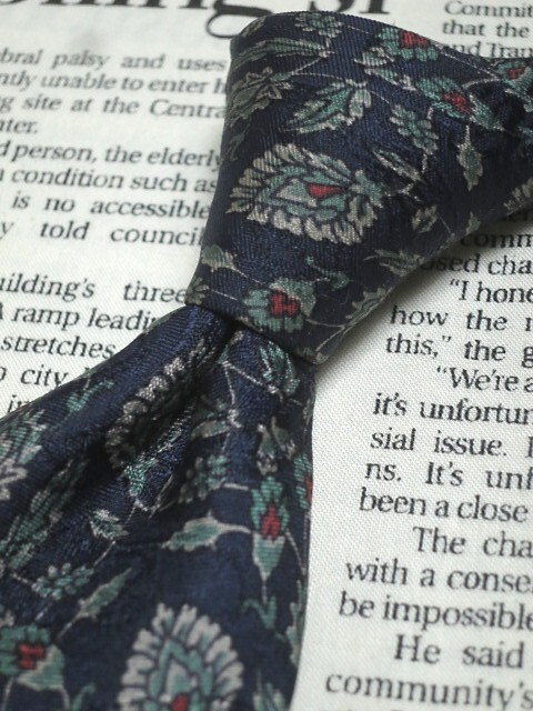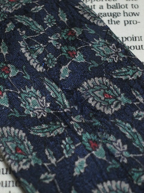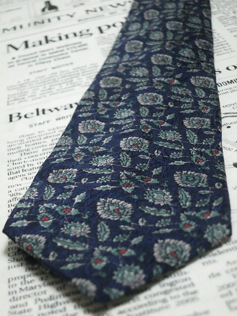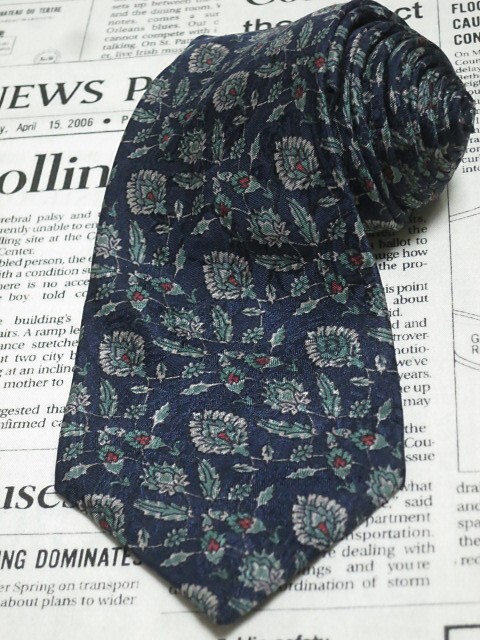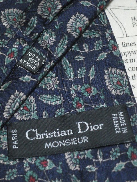 落ち着いた色合いでオシャレ! クリスチャンディオール Christian Dior 微光沢 ネクタイ フランス製 シルク100% 植物柄 濃紺系 ネイビー系 L-005481 | ||