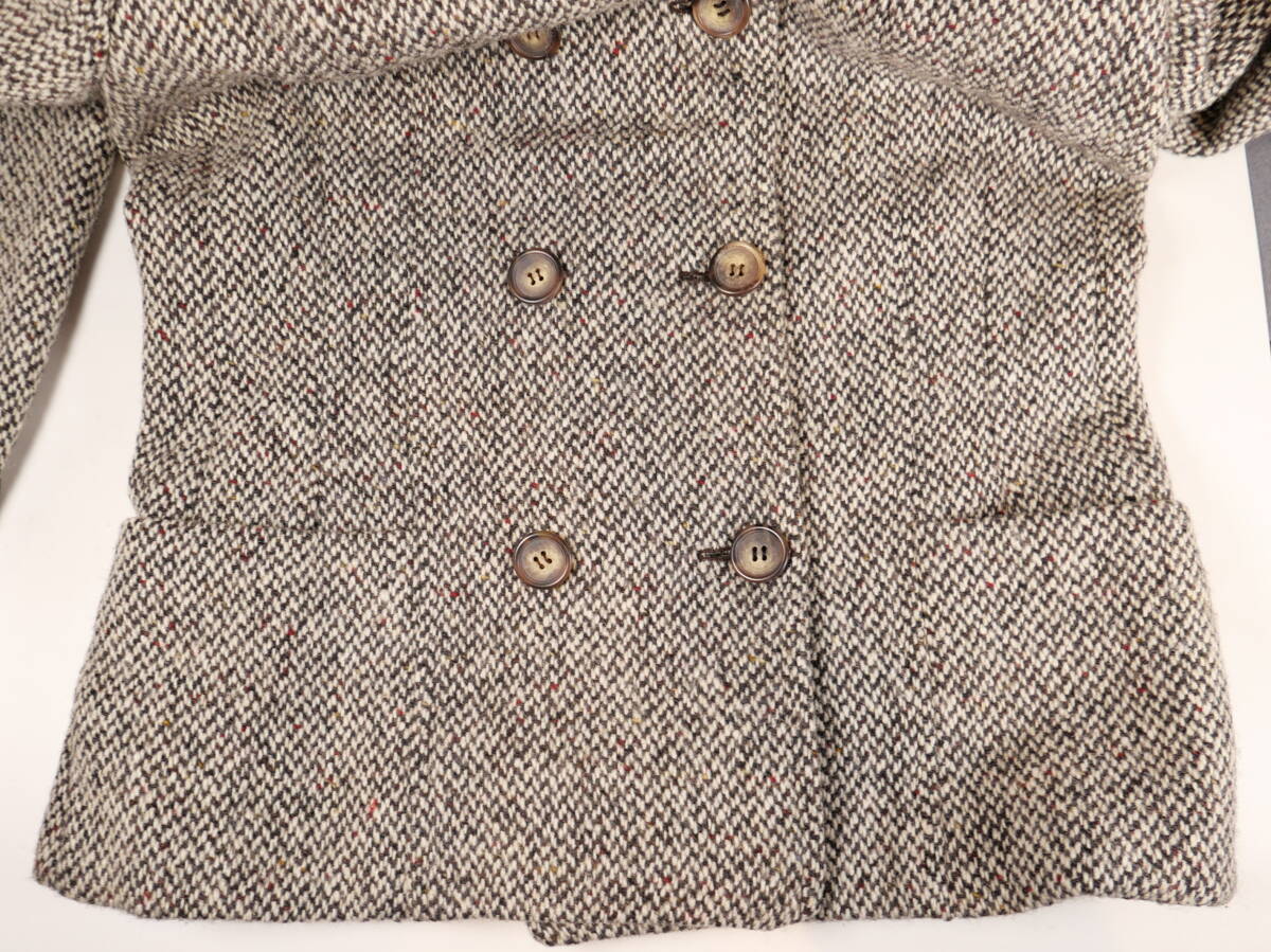 ご覧いただきまして、ありがとうございます!! ※落札品の同梱対応お承り致します(送料再計算) ※送料は下部に記載がございます、送料質問には回答致しませんので予めご了承ください。 ≪サイズ≫ 身幅:(約)47cm 着丈:(約)63cm ウエスト:(約)62cm 丈(約)50cm ※平置きにて計測。素人採寸のため多少の誤差はご了承ください。 ≪素材≫ ウール:100% ≪付属品≫ なし ◆状態◆ B~C :使用感はあるが、比較的に傷や汚れの少ない中古品 画像にてご確認の上、ご入札をお願い致します。 +++コンディションレベル説明+++ S :ほぼ新品・未使用品同様の中古品 SA:1~2回使用の綺麗な中古品 A :使用感が少なく、かなり状態の良い中古品 B :使用感はあるが、傷や汚れの少ない中古品 C :かなりの使用感や、傷や汚れ、劣化が見られる中古品 D :大きな傷やシミ、劣化などが目立つ中古品 ※S~Dランクは中古品となりますので、使用感をご理解の上でご入札下さい。 商品情報等は、専門店ではございませんので、外観で確認できる文字や刻印を基に記載しております。また中古品ですので、ご理解のある方のご入札をお願い致します。 ※お使いのパソコン、携帯電話の状況及び撮影時の状況により 写真と実際の商品の色合いが多少異なる場合がございます。ご了承ください。 ※直接取引や価格交渉等の対応はしておりませんので、ご了承くださいませ。 ●現状でのお渡しでございますので、ご理解の上、ご入札をお願い致します。 ●経年品である事を予めご了承のうえでご入札お願いいたします。 ●各部に経年によるダメージがございます。画像にてご判断くださいませ。 ●神経質な方は入札をご遠慮下さい。 ●年代物の為、ノークレーム・ノーリターンにてお願いします。 ●案内文、説明文を読み、納得して入札をお願い致します。 ●配送は下記のみの対応と致します 。 | ||