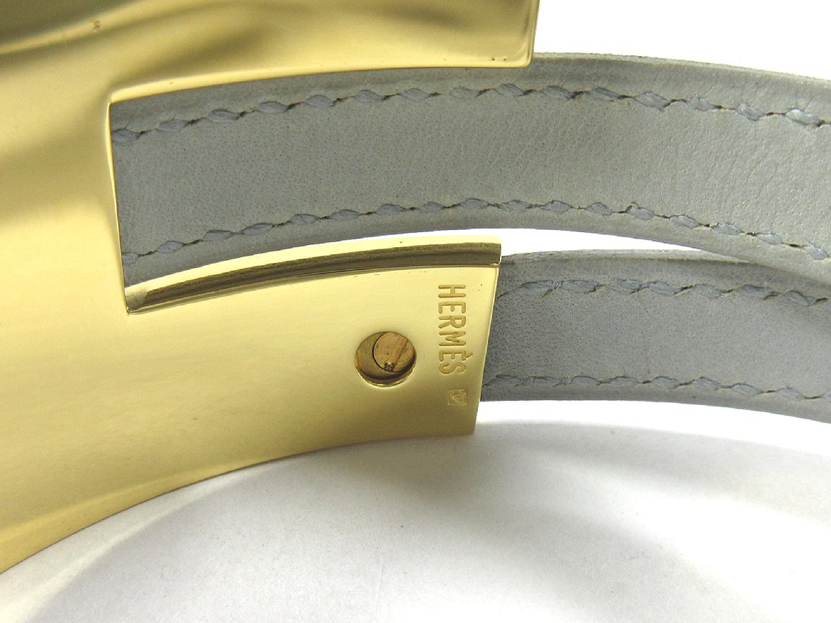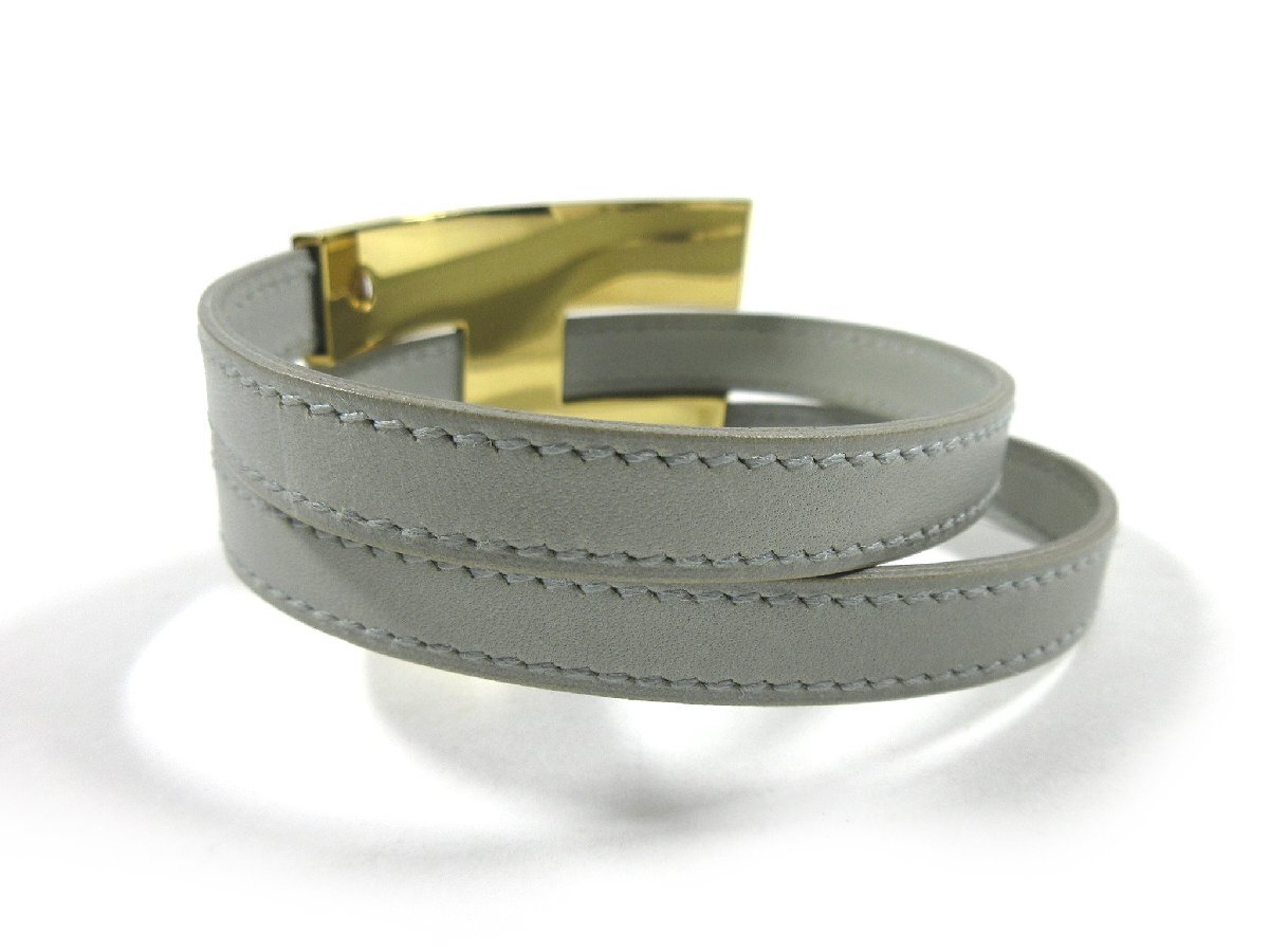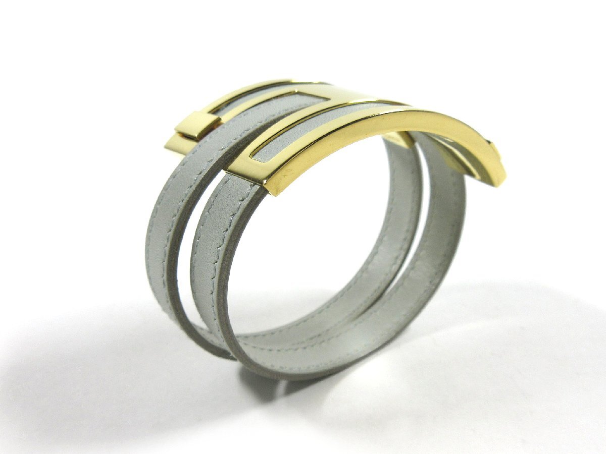 【エルメス】プスプスMM 2重 レザー ブレスレット ライトグレー ゴールドカラー金具 □E 2001年製 H2