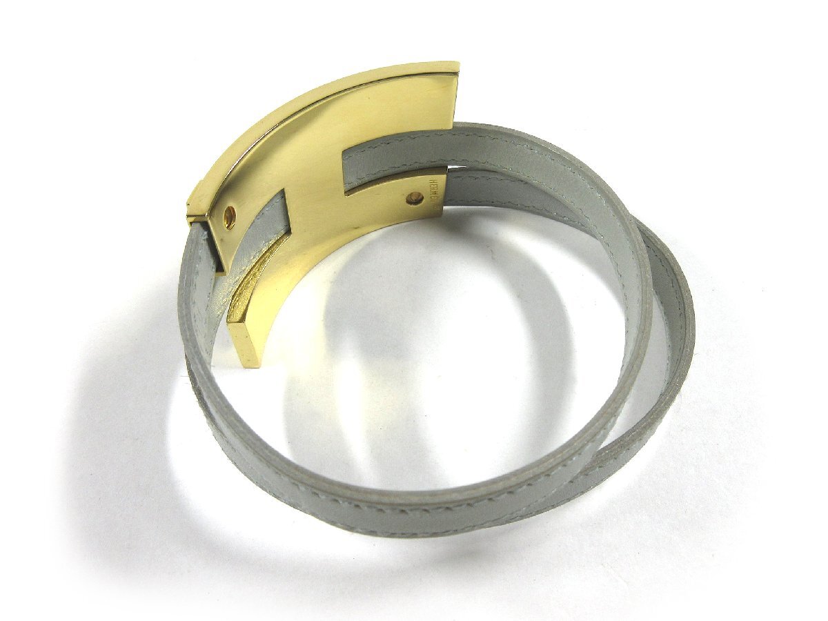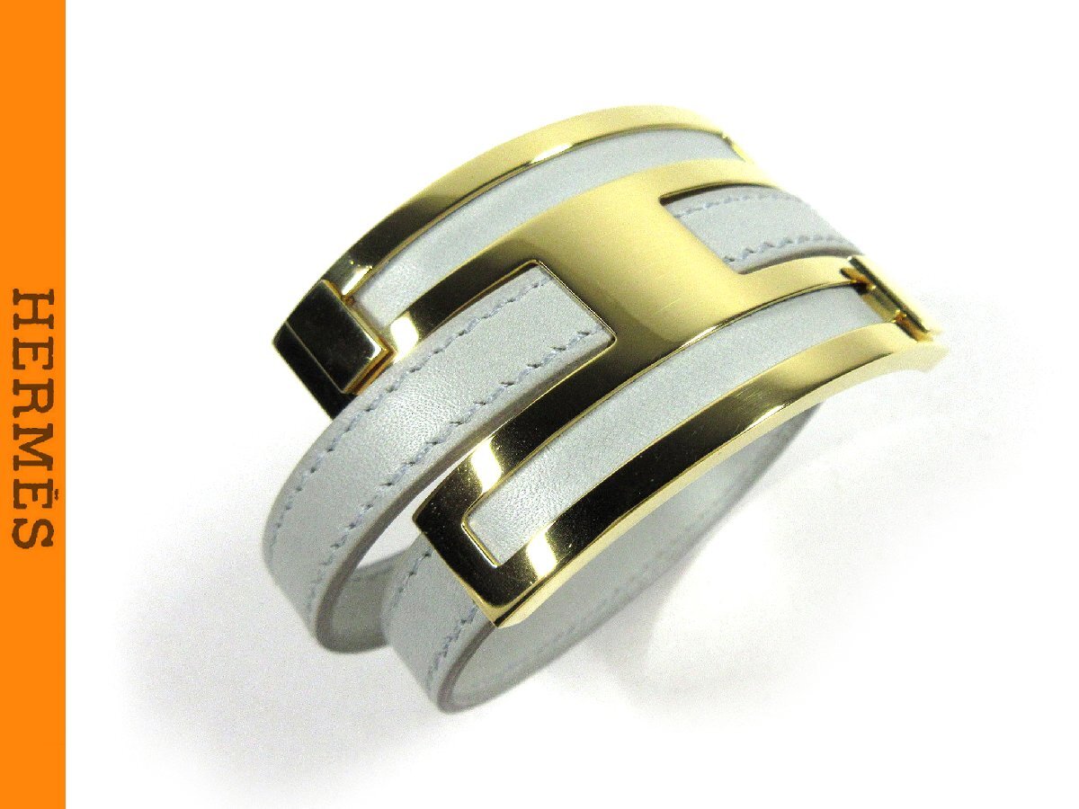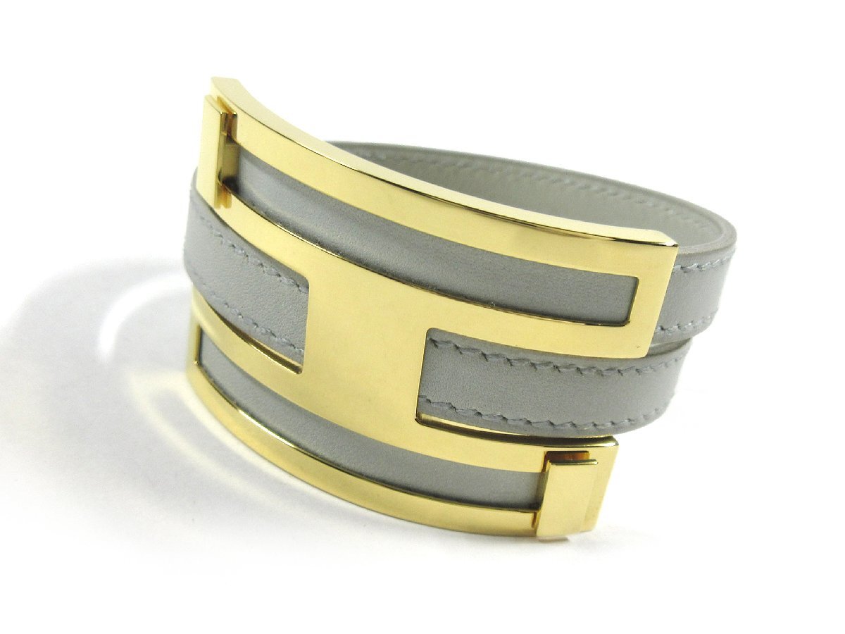 【エルメス】プスプスMM 2重 レザー ブレスレット ライトグレー ゴールドカラー金具 □E 2001年製 H2