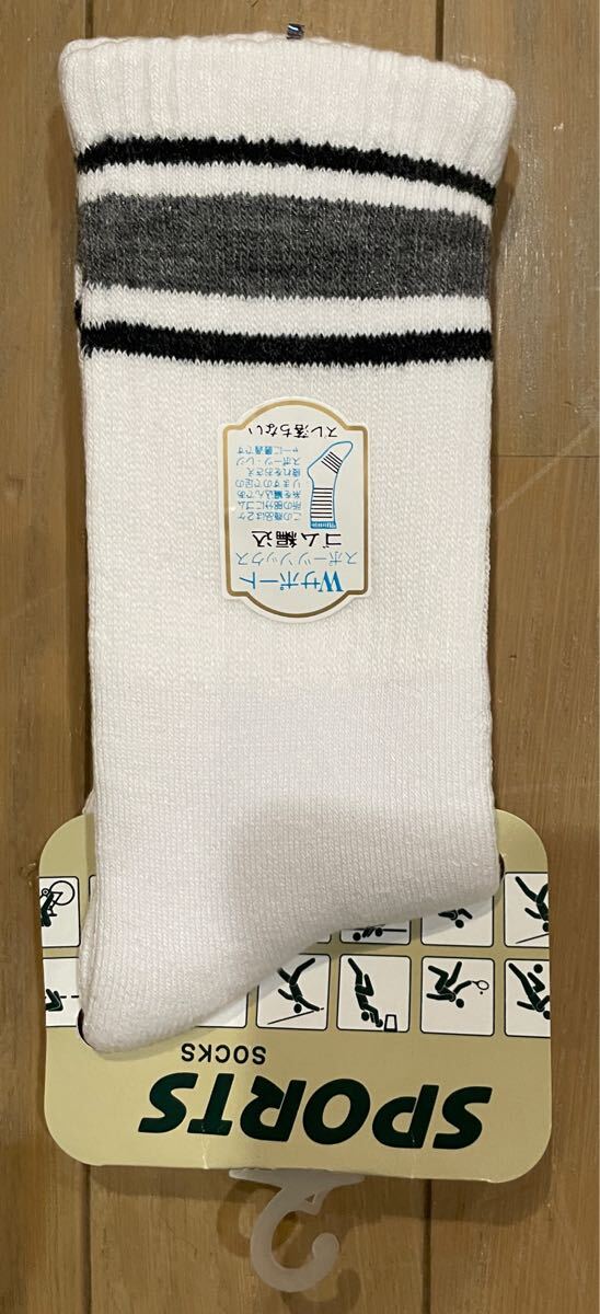 日本製 レトロ ライン ソックス ホワイト スポーツ ハイソックス ビンテージ アメリカ デッド 古着 アメリカン スタイル 古着 アメリカ