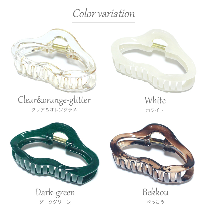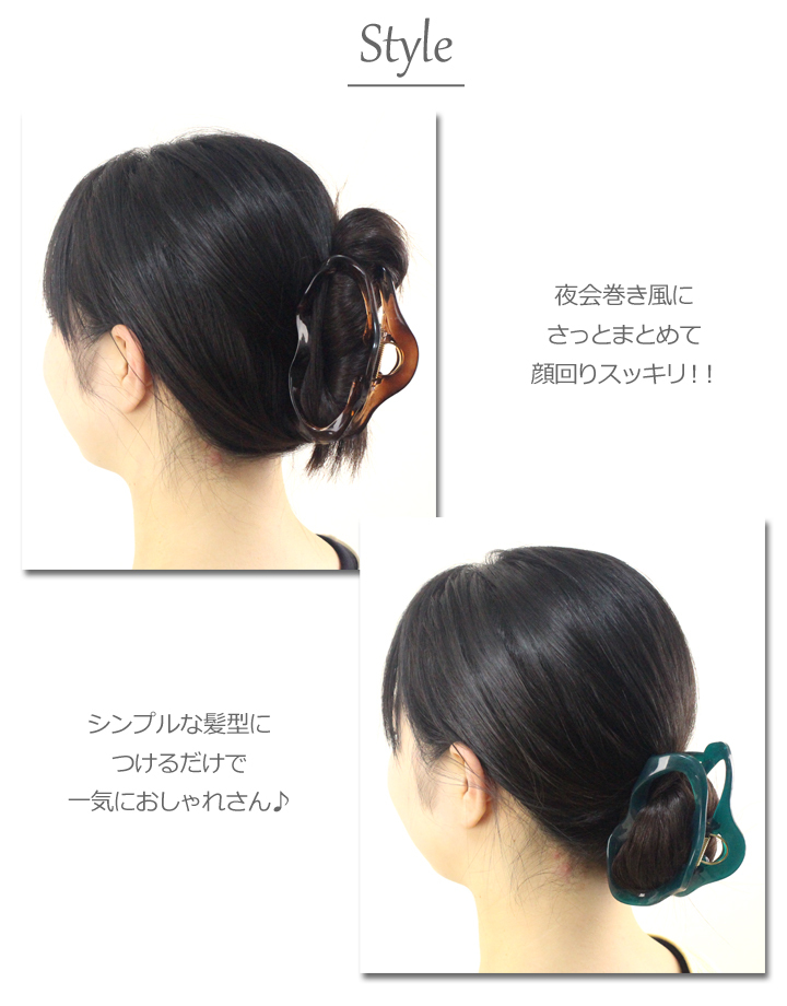 商品説明 | ウェーブラインがオシャレ♪大きめのくり抜き楕円のヘアクリップ。 夜会巻き風に!お団子風に!幅広いアレンジが嬉しい♪ しっかりとしたバネでホールド力もバッチリ!! 軽め素材なので、髪の負担が少ないのも良いですね♪ |