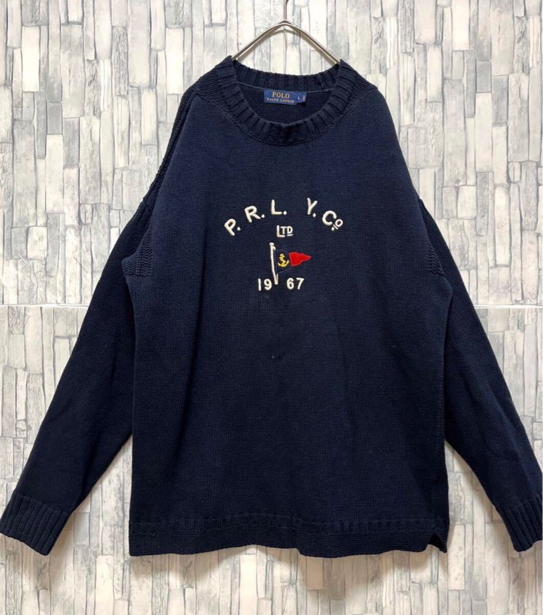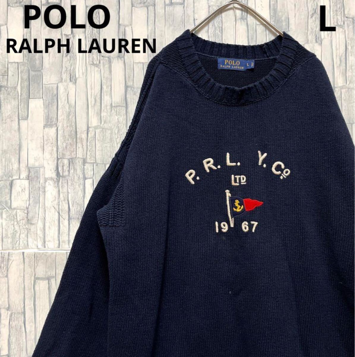 POLO RALPH LAUREN ポロ ラルフローレン 長袖 ニット セーター デカロゴ ビッグロゴ 刺繍ロゴ サイズL 送料無料の出品です。