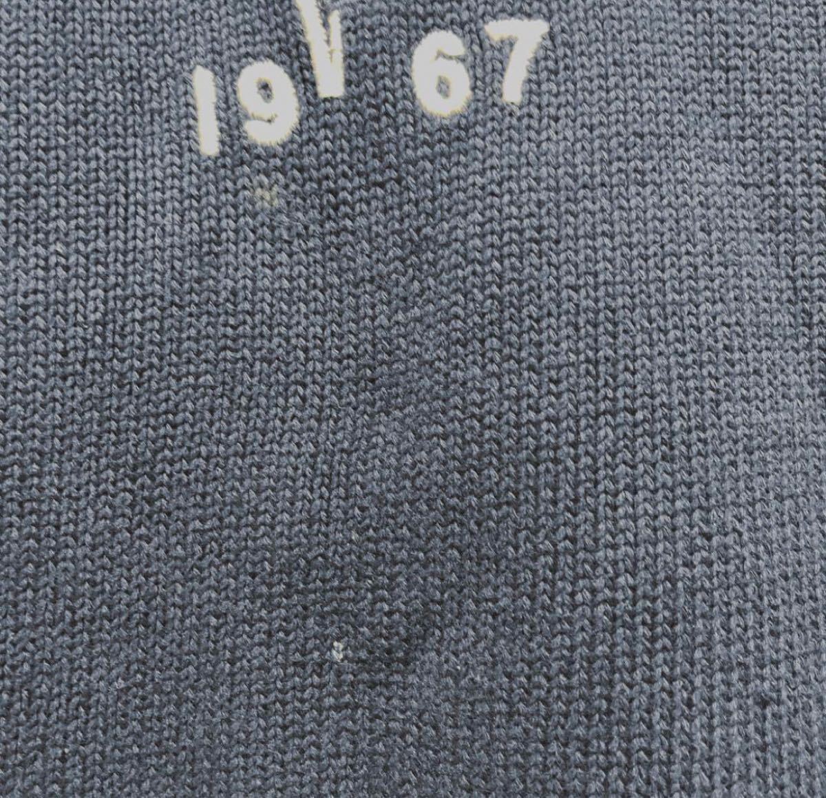 全体的にあまりダメージはありませんが、多少使用感があり、画像4の刺繍部分にシミがあり、画像5のロゴの下に軽く汚れがあります。