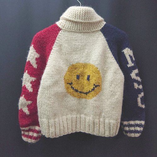 ◇ MU・CHA・CHA ジップアップ ニット にこちゃん キッズ 長袖 ブルゾン サイズM アイボリー マルチ レディース メンズ E