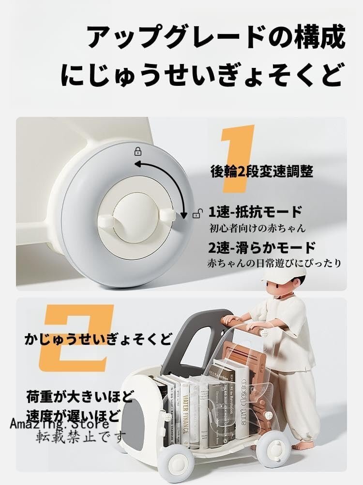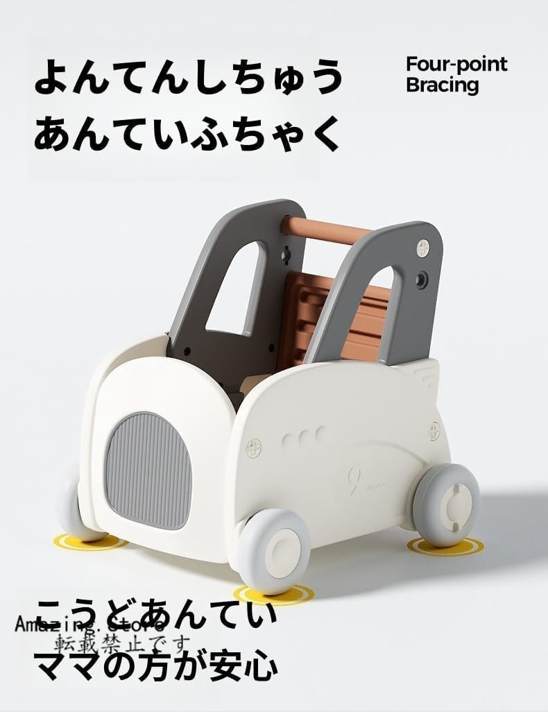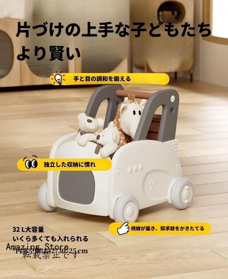 大好きなおもちゃを積んで歩く練習:ゲームをしたり、好きなおもちゃを入れたりして運んだり、つかんで歩く練習用として使ったり、室内専用のおもちゃ箱として使ったりすることができます。タイヤは室内で遊んでも床を壊すことはありません。