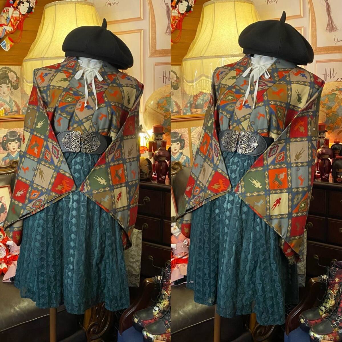 【 羽織コーデセット コーディネート まとめ売り 和洋折衷 レトロ クラシカル セレクト 可愛い古代エジプト壁画風柄×グリーン系 4点セット C-581 】