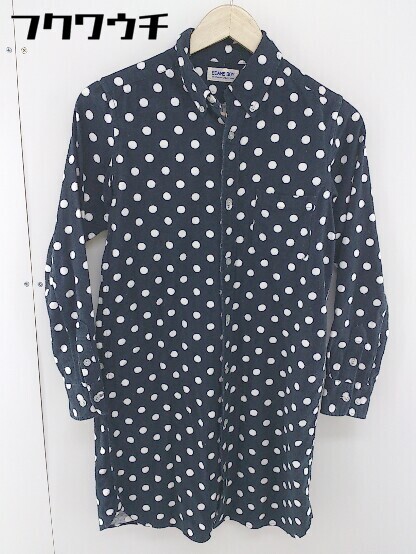◇ ◎ BEAMS BOY ビームス ボーイ 水玉 ドット ロング丈 長袖 シャツ ブラウス ネイビー ホワイト レディース