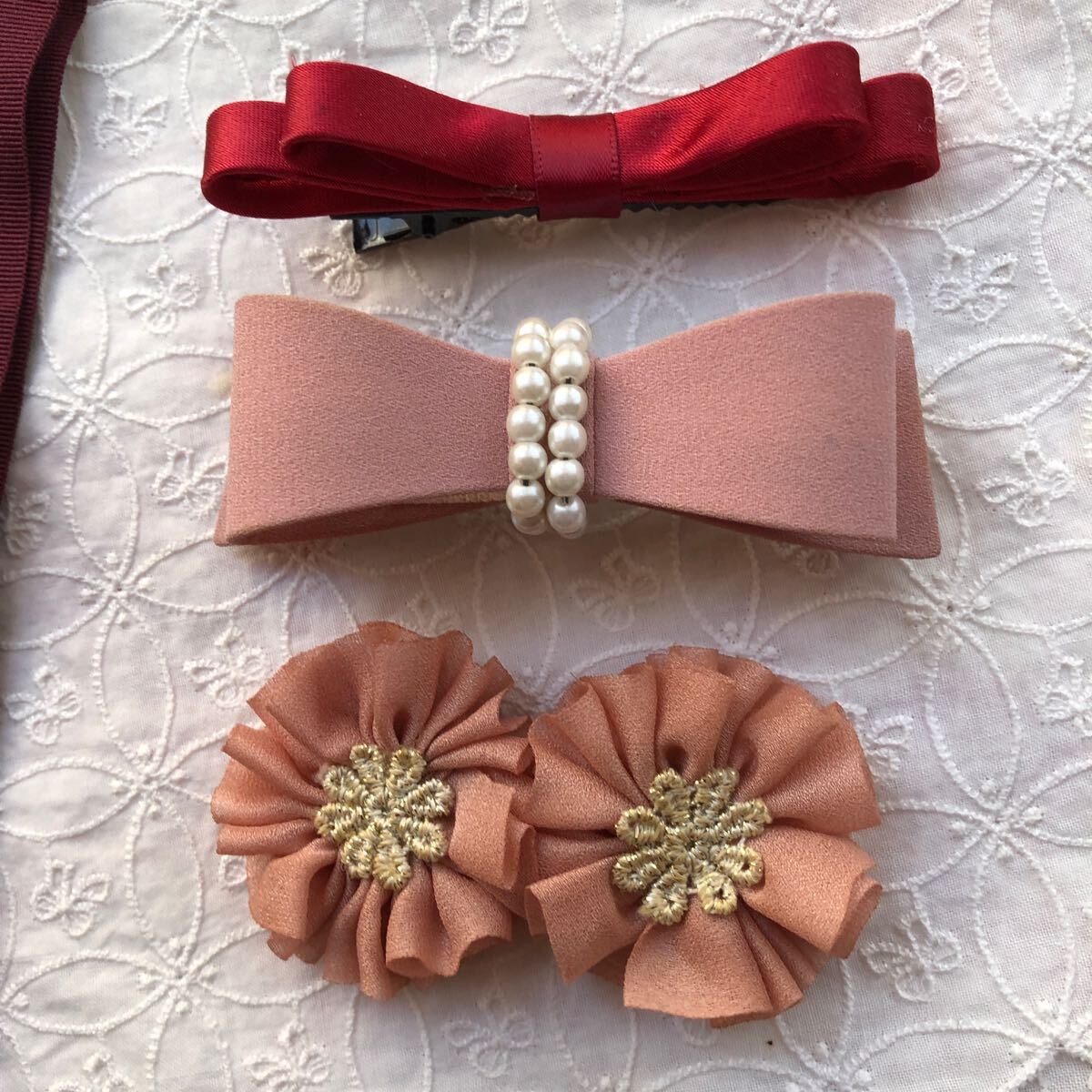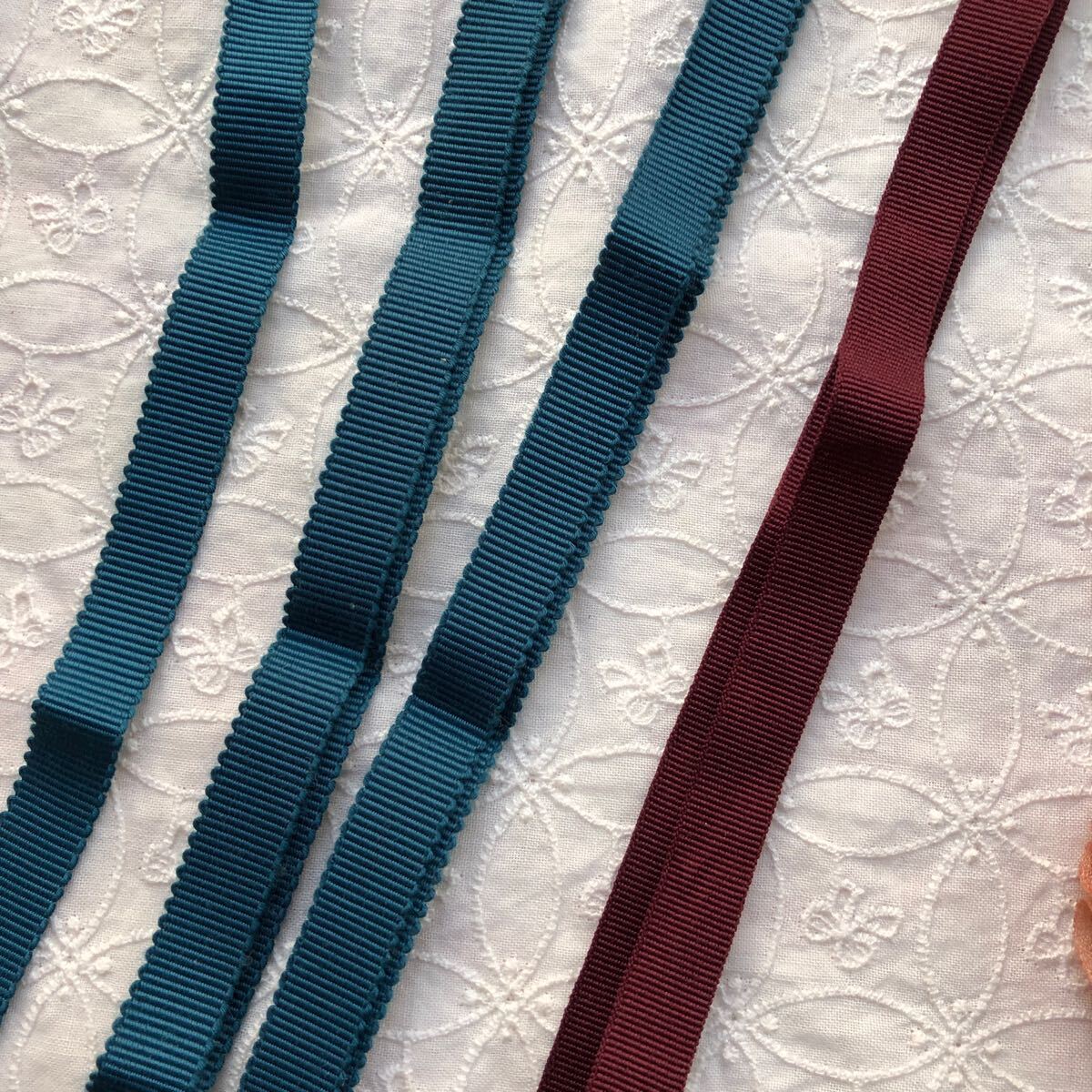 リボンはえんじ色が1本と、渋いタイコースブルーが3本です