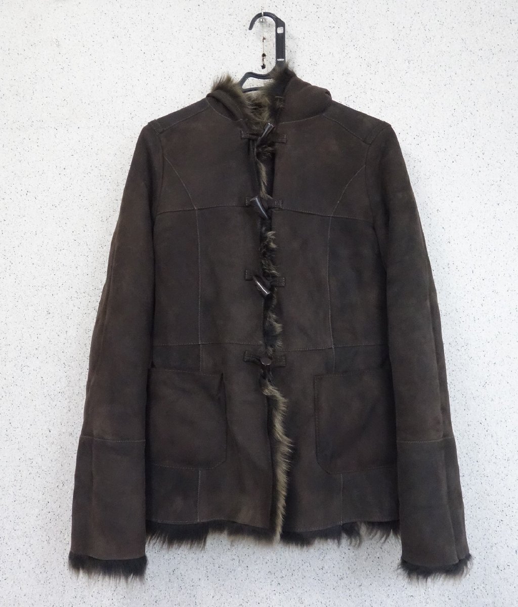 未使用 レディース MANI マー二 ダッフルコート 羊革 サイズS 茶 ダークブラウン