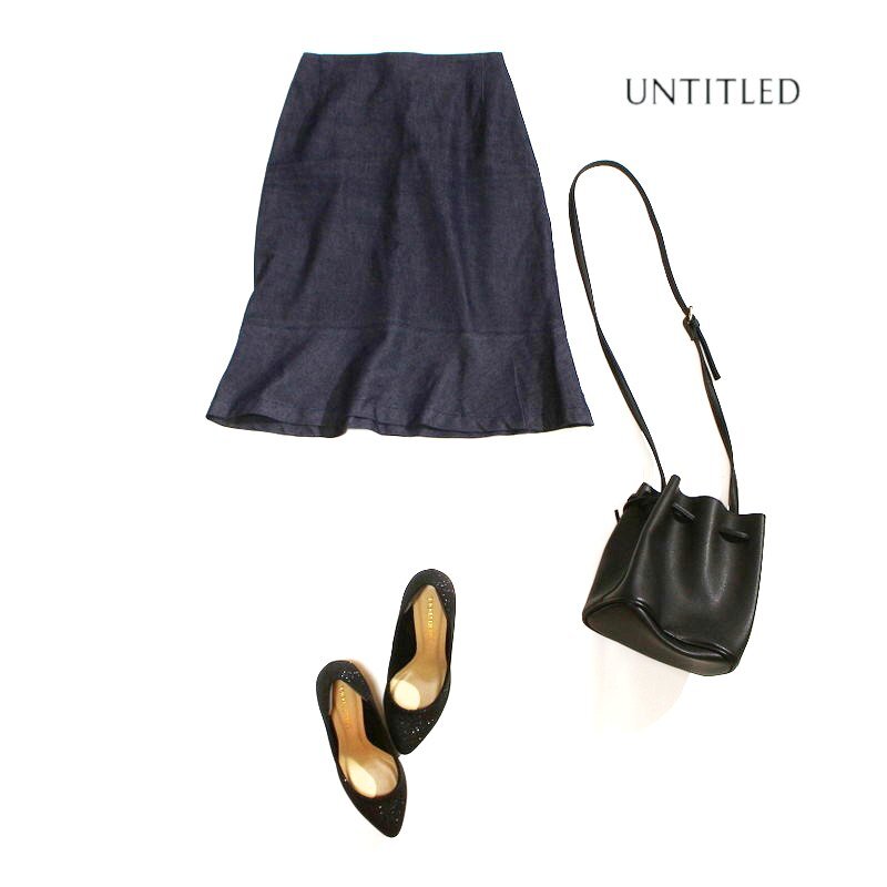 アンタイトル UNTITLED 株) ワールド ストレッチ 緩やかAライン 膝下丈 デニムスカート 7号 ネイビー 紺 綺麗め 大人 ミセス タイトめ
