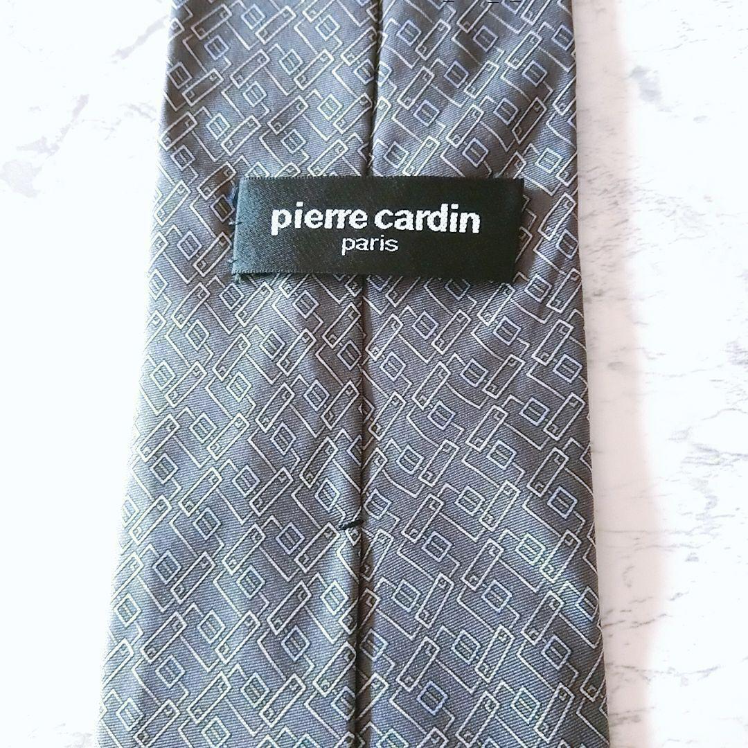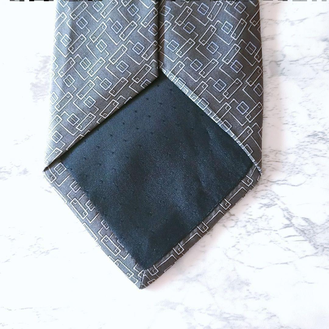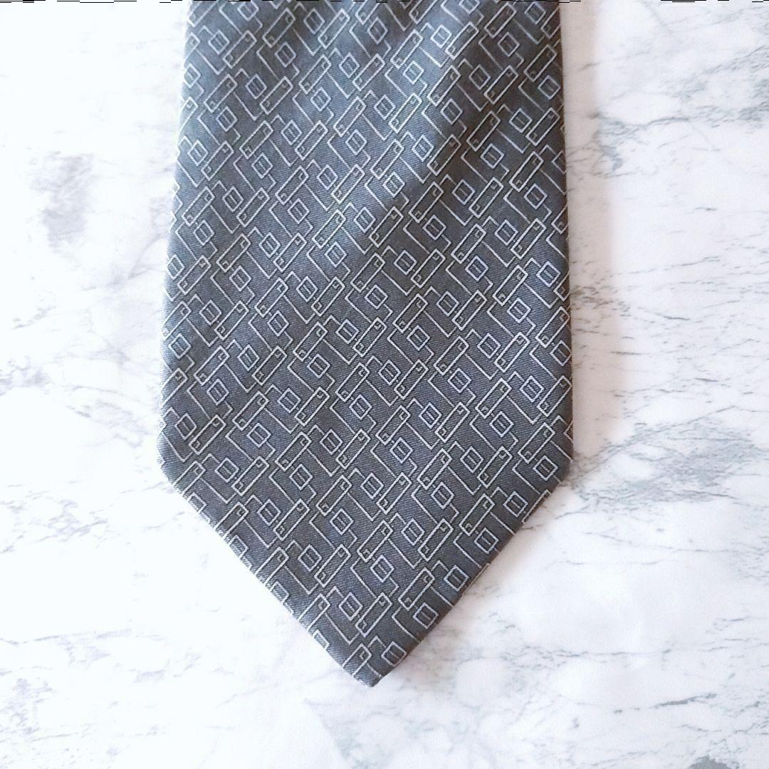美品 pieere cardin ピエールカルダン シルク ネクタイ グレー 幾何学 モザイク 光沢 落ち着き ビジネス プライベート