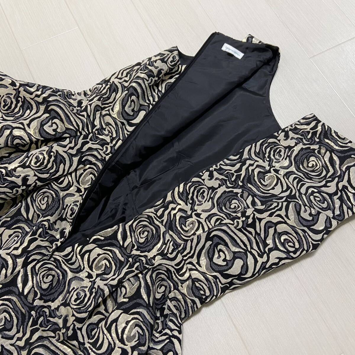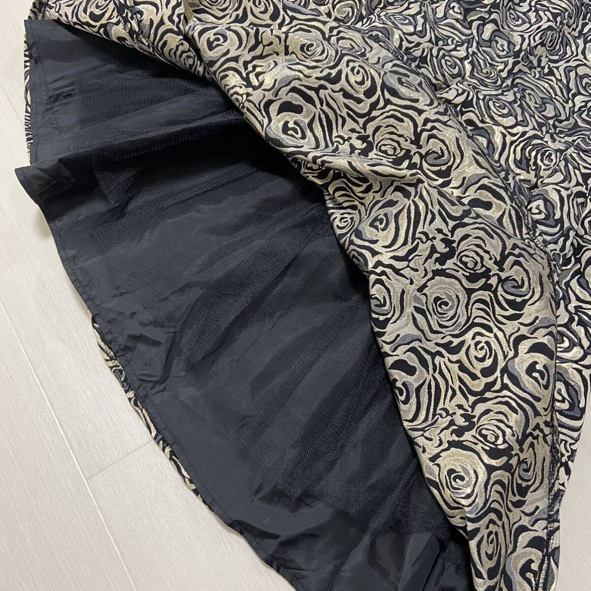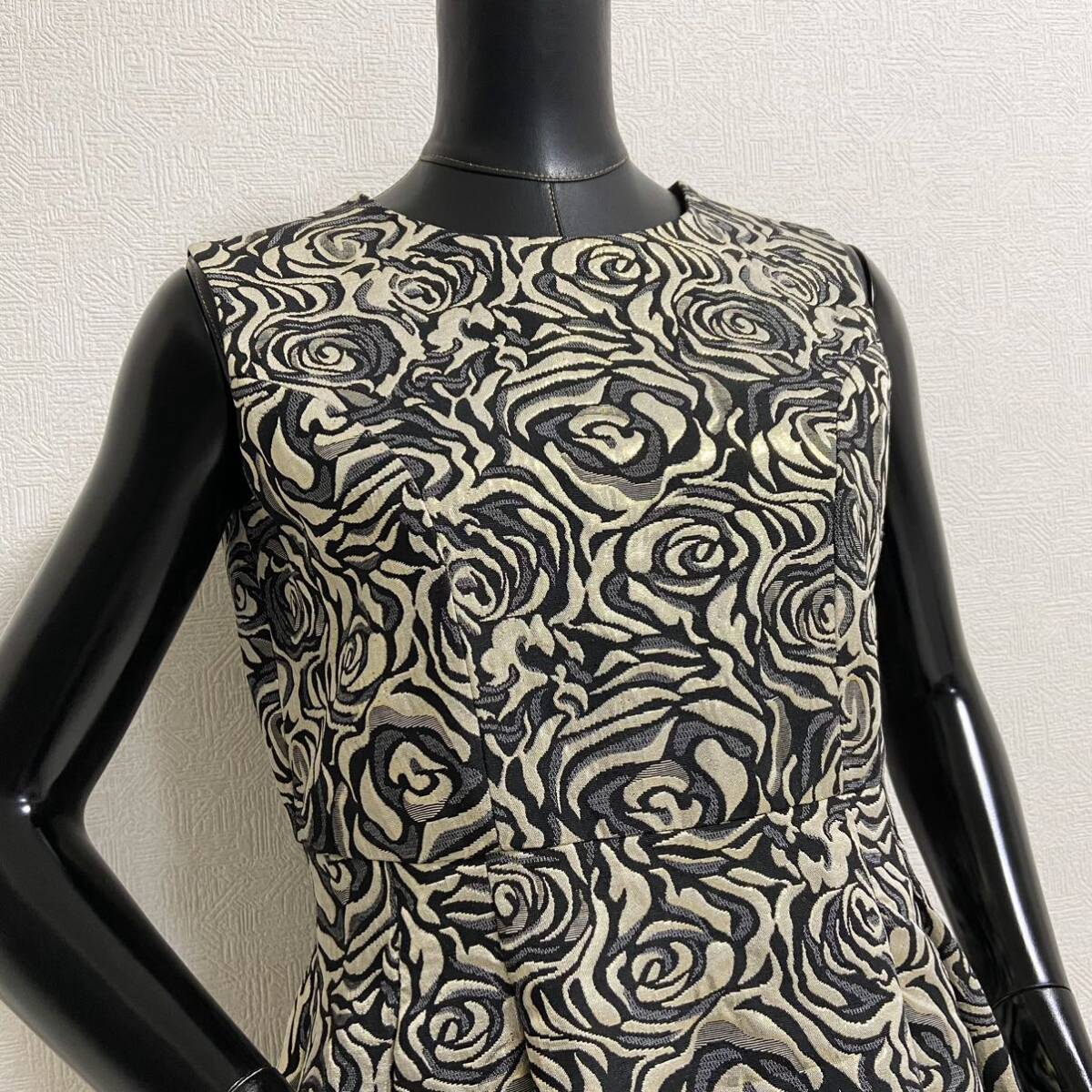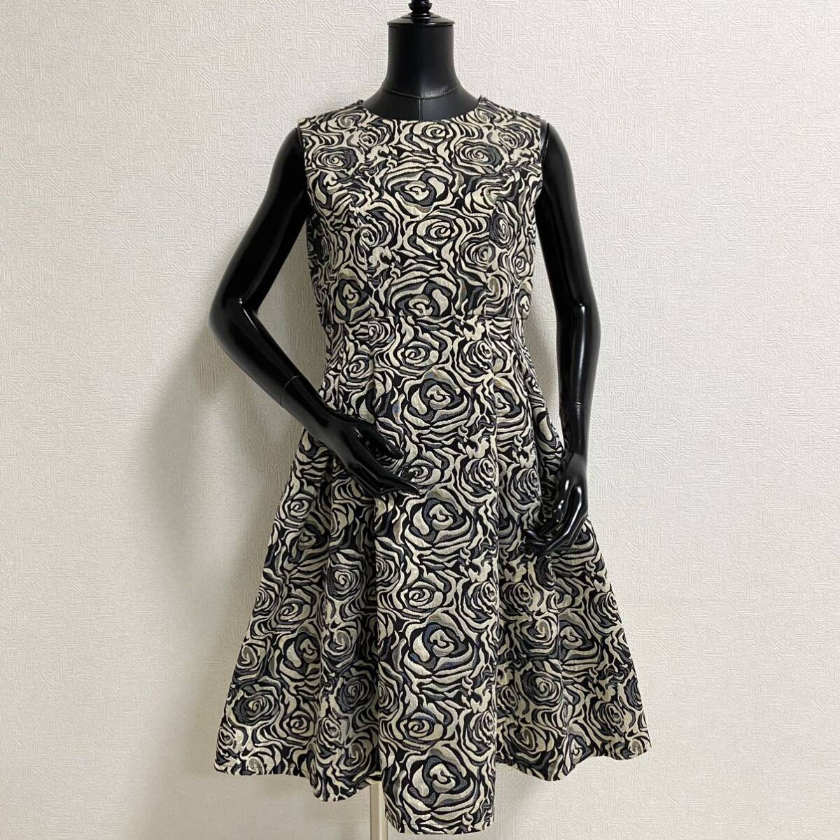 エレガントなローズボタニカルモチーフをラメジャガードに乗せて。豪華なエンブロイダリーで立体感を演出。裏地とは別にチュールレースが配置されており、メリハリのあるシルエット。