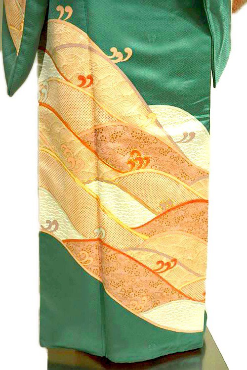 訪問着 中古 着物 送料無料 身丈166cm 裄丈66cm 最高峰 新品同様 十日町老舗ブランド 吉澤友禅 吾妻徳穂 金彩 金駒 立波文 正絹 T3393