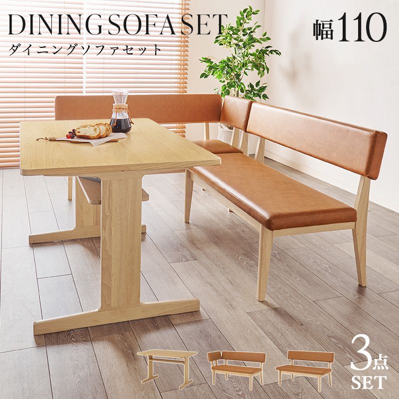 サイズ テーブル:(約)幅110×奥行70×高さ65cm、2Pタイプ:(約)幅115×奥行54×高さ74×座面高41cm、コーナータイプ:(約)幅123×奥行54×高さ74×座面高41cm