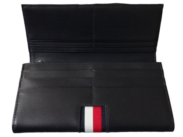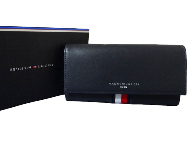 新品未使用 正規品 トミーヒルフィガー TOMMY HILFIGER 長財布 かぶせ財布 ダークネイビー 牛革 箱あり メンズ