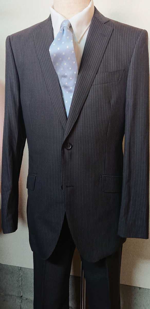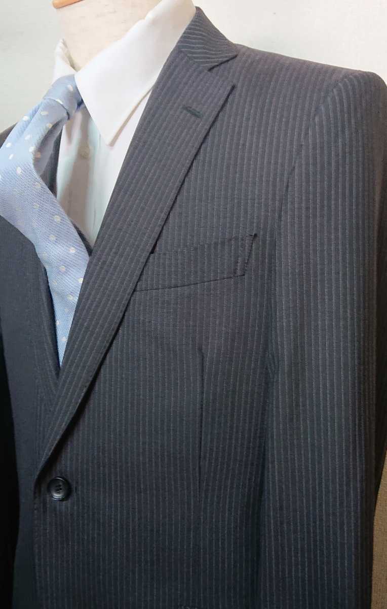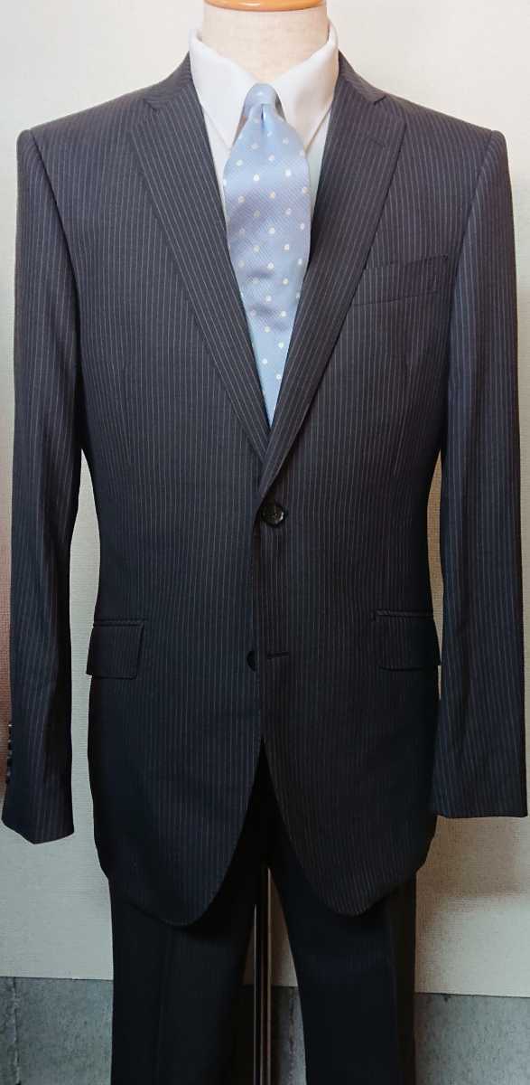 ☆在庫1点限りになります! サイズ⇒YA9(85) ジャケット⇒着丈78cm、肩幅46.8cm、袖丈65.5cm、チェスト111cm パンツ⇒ウエスト85cm、ワタリ幅34.7cm、裾幅21.7cm、股上26.5㎝、股下98cm ※測り方による誤差は生じます。 色・柄⇒グレー・ストライプ 表地⇒毛98%、ポリエステル2% 裏地(背抜き)⇒ポリエステル100% 袖裏⇒キュプラ100% ベント⇒センターベント ステッチ⇒入り 袖ボタン⇒4個、本水牛ボタン使用 台場⇒切台場 タック⇒ノータック 商品状態⇒新品 着用季節⇒春夏 R7-241231XA |