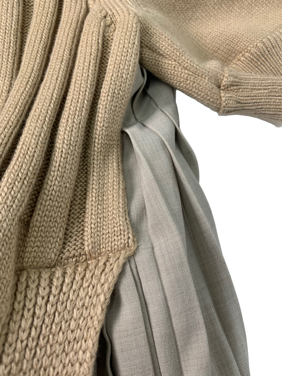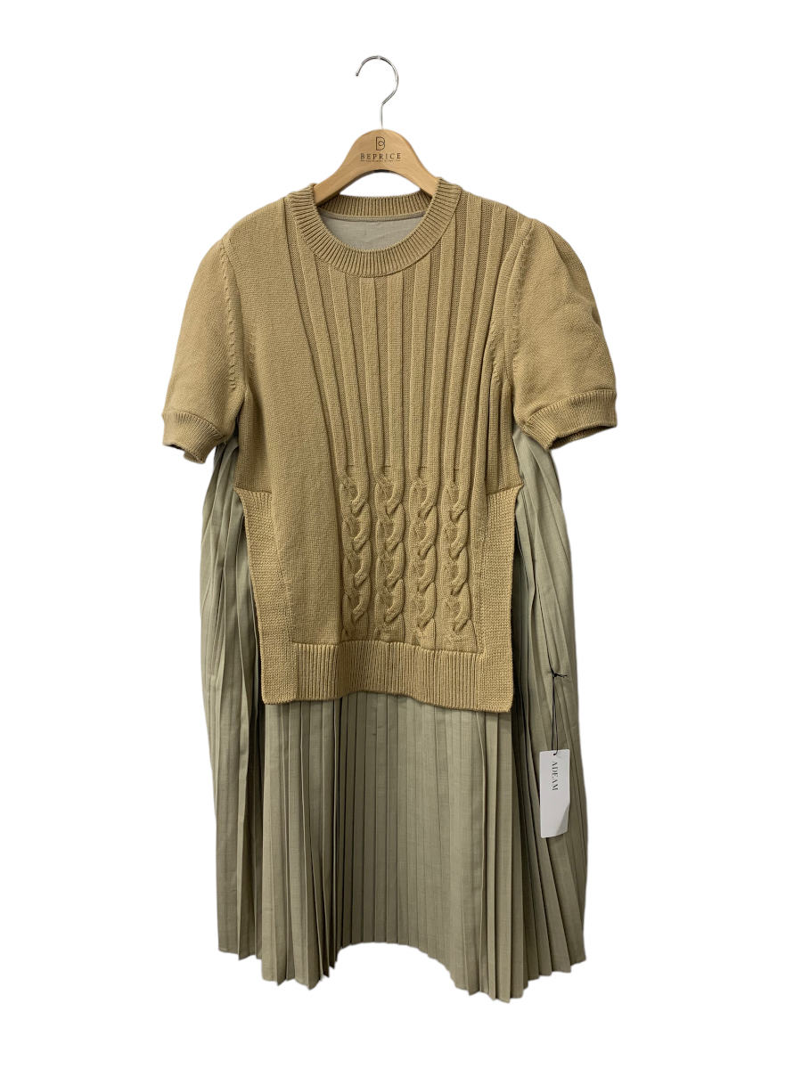 ADEAM(FOXEY) アディアム ワンピース S Ellsworth Dress ベージュ ニット切り替え プリーツ ITBP0K4F5CPW