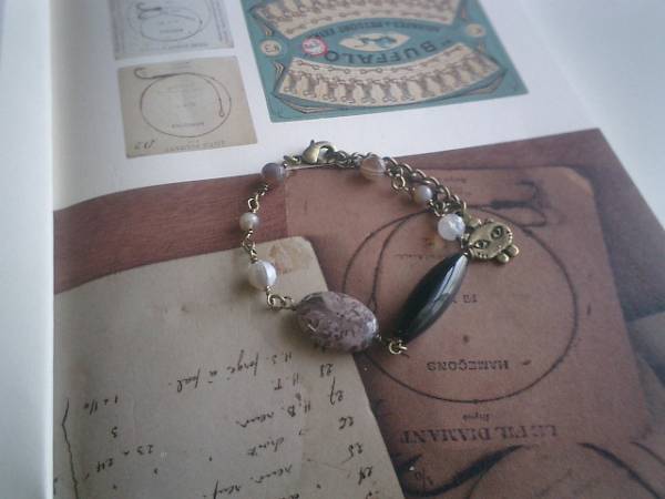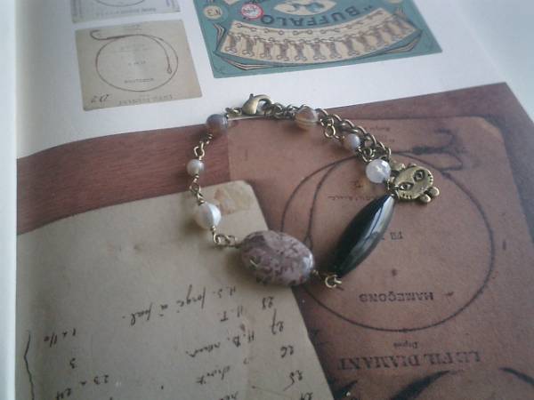 大人色の物語・・シリーズです♪アート的なデザイン・・シックなオニキスと個性的なアーティストジャスパーのブレスレットです♪25×8ミリのナツメのオニキスに4ミリ、6ミリのランダムカットのボツワナアゲート、18×13ミリのフラットオーバルのアーティストジャスパーを合わせました♪長さは全長23センチ位で調節自由です♪お揃いのネックレスも出品しています♪♪シンプルで飽きのこないいつまでも着けられるデザインを考えて作りました!ハンドメイドをご理解頂いてノークレーム、ノーリターンでお願いします