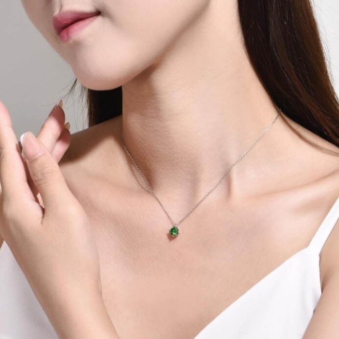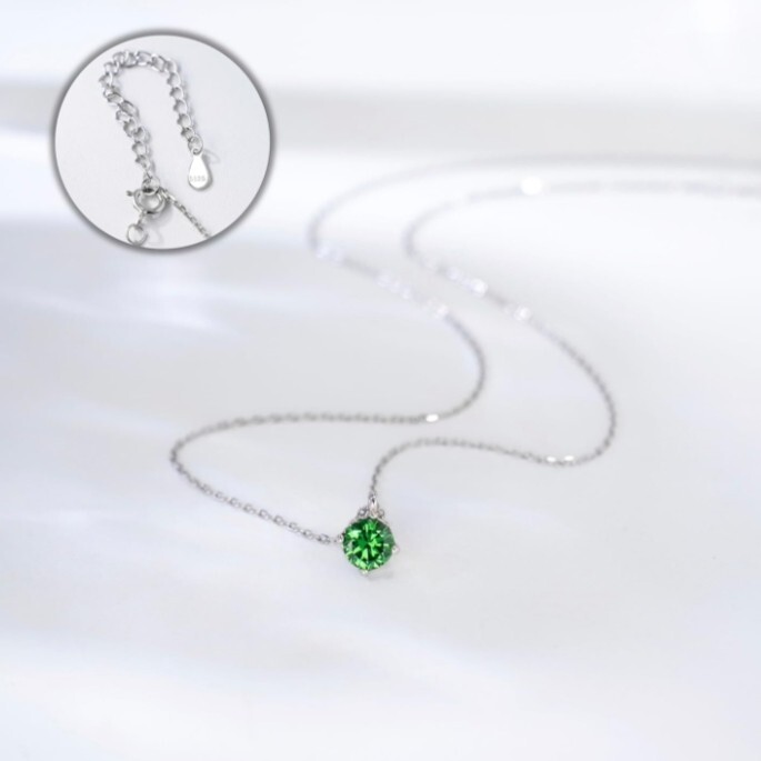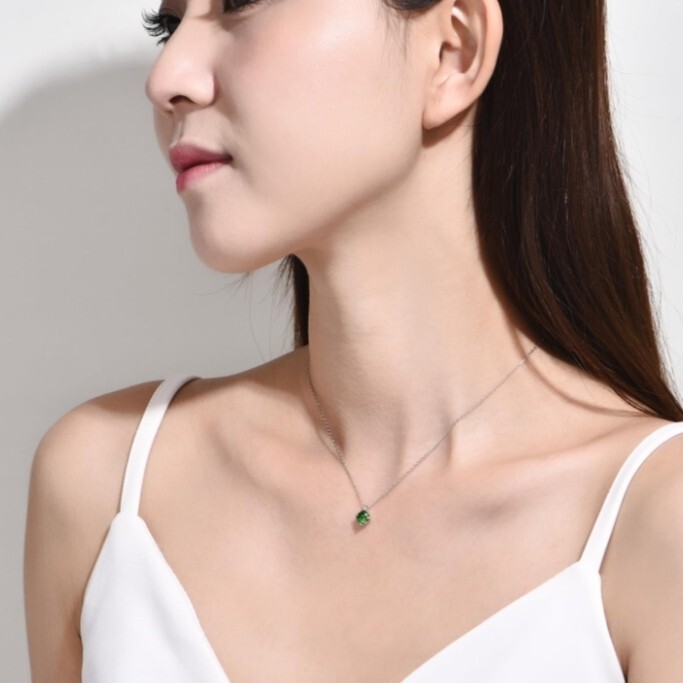 シンプルなネックレスで、屈折率・反射など一番美しく輝く形状に計算されたカットとなっていて、とてもキラキラ輝いて魅せてくれます。