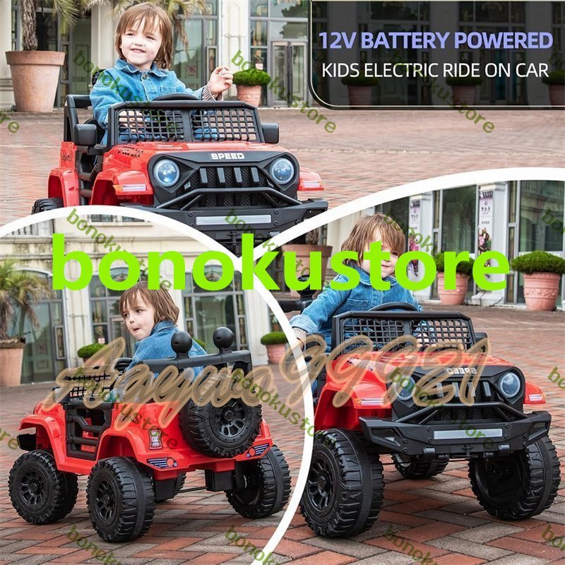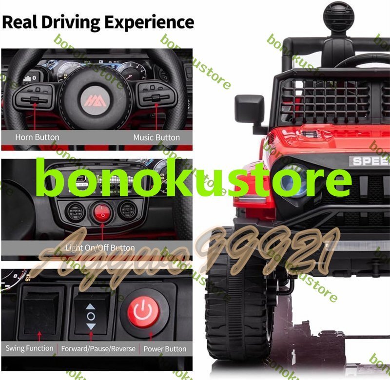 12V バッテリー駆動 子供用 リモコン付き乗用車 ボタンスタート スイングボタン MP3 電動車 電動トラック 車 3歳以上 黒+赤