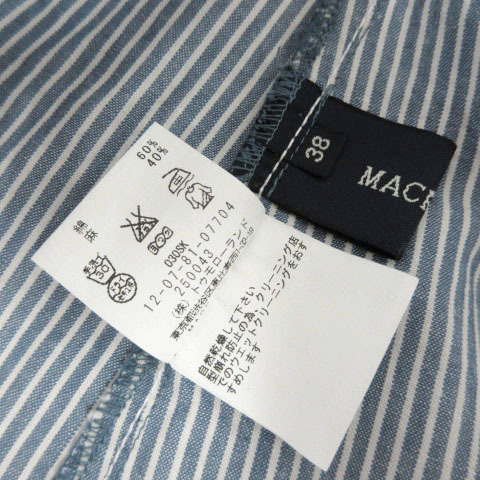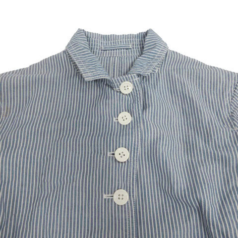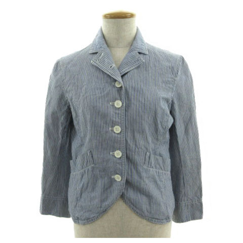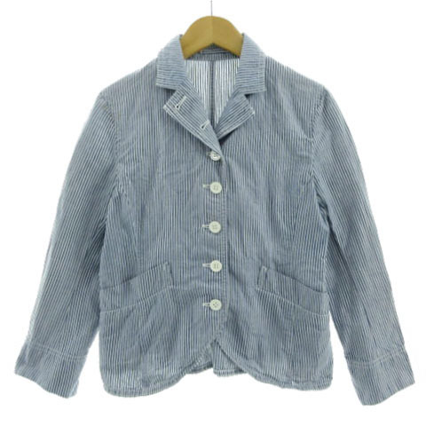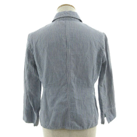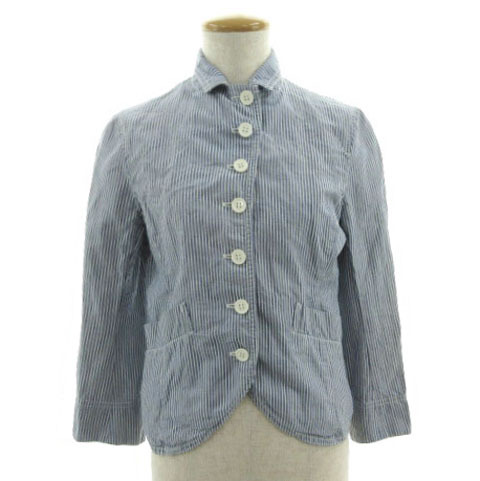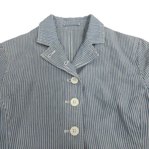 マカフィー MACPHEE トゥモローランド ジャケット コンバーティブルカラー クロップド丈 リネン混 ストライプ 青 白 38