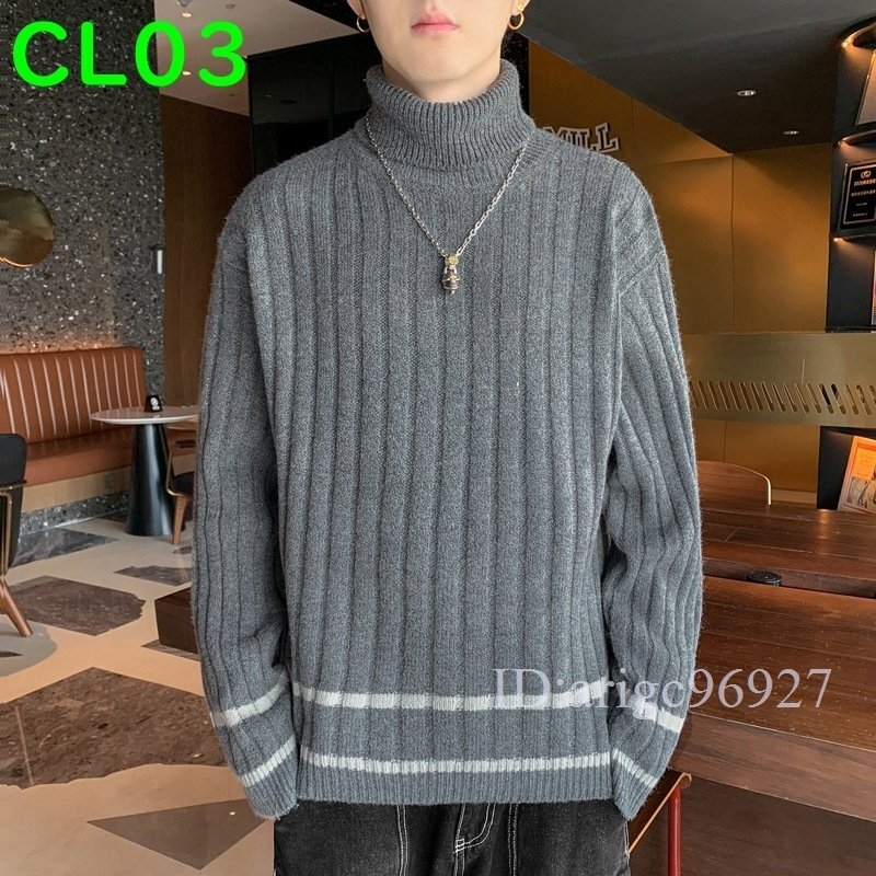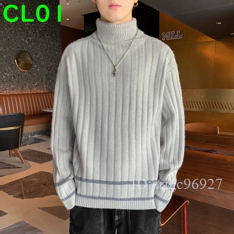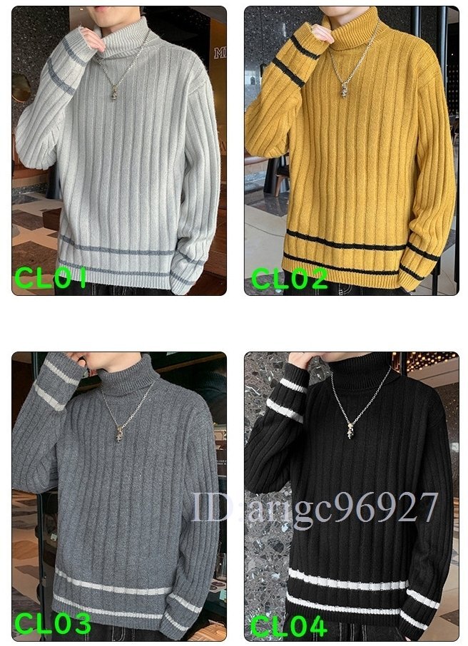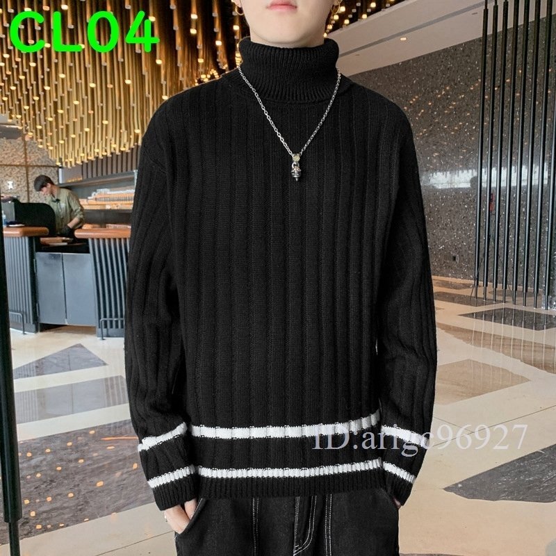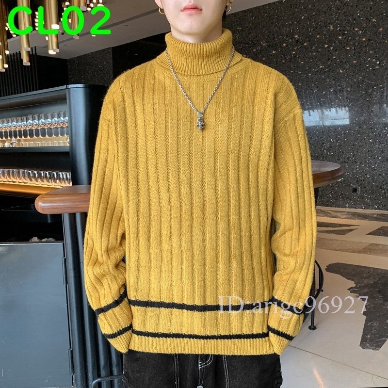 J044★ニット セーター トップス ケーブルニットタートルネック メンズ 厚手 保温 暖か 無地 お兄系 全4色 [M~3XL]選択可