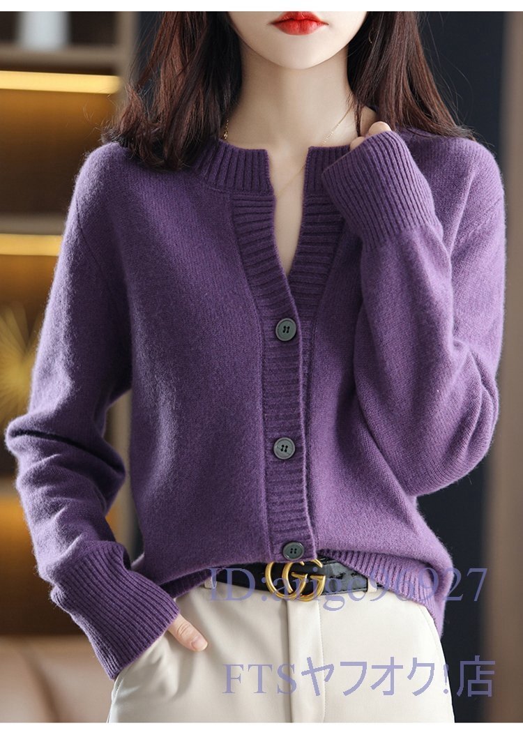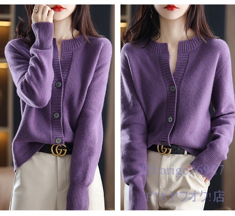 V460☆新品M-XLサイズ?秋冬上質ミンクカシミヤ混カーディガン柔らかい暖かい20304050代レディーストップスニットセーター*紫